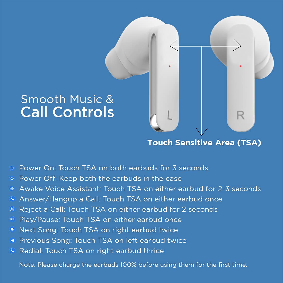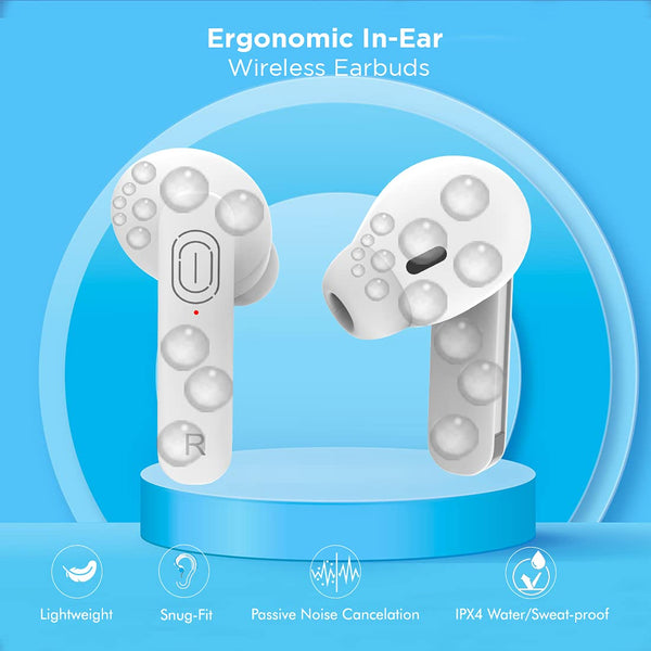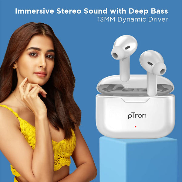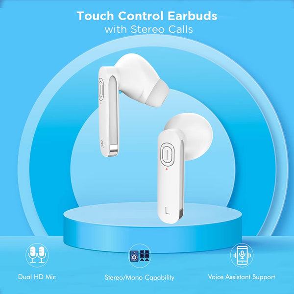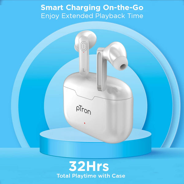 pTron Bassbuds Duo in Ear Earbuds with 32Hrs Total Playtime, Bluetooth 5.1 Wireless Headphones, Stereo Audio, Touch Control TWS, with Mic, Type-C Fast Charging, IPX4 & Voice Assistance (White)