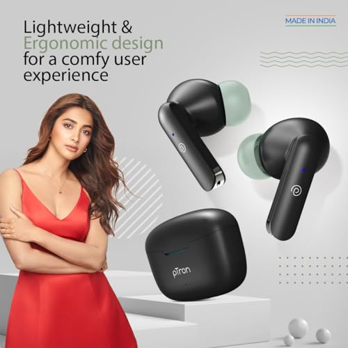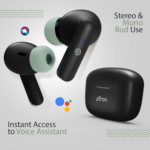 pTron Bassbuds Duo In-Ear Wireless Earbuds, Immersive Sound, 32Hrs Playtime, Clear Calls TWS Earbuds, Bluetooth V5.1 Headphone,Type-C Fast Charging, Voice Assist & IPX4 Water Resistant (Black & Green)