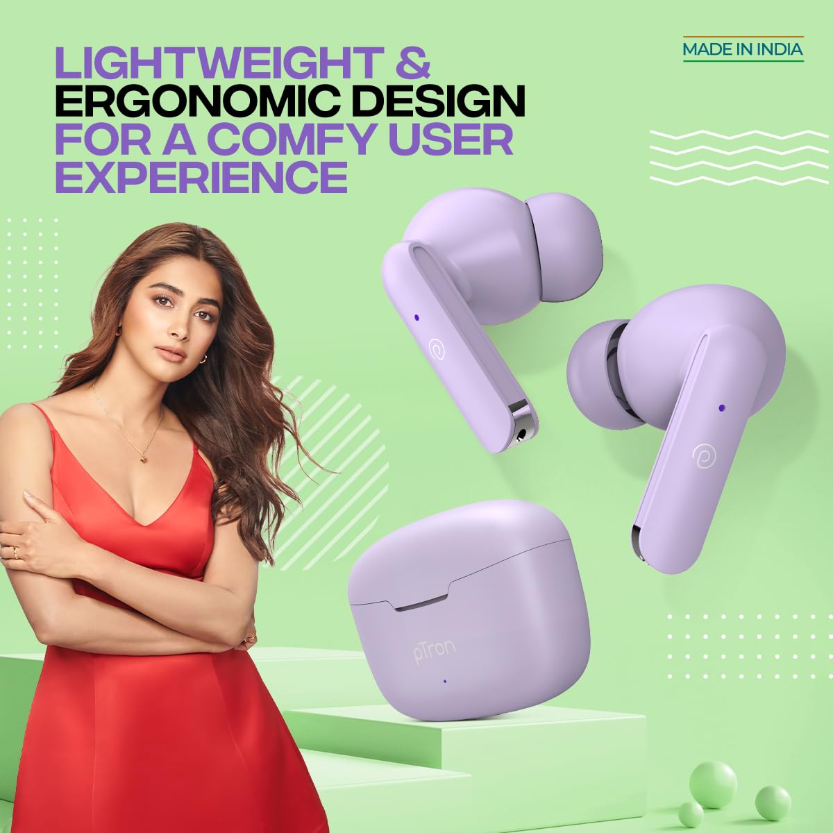 pTron Bassbuds Duo in-Ear Wireless Earbuds,Immersive Sound,32Hrs Playtime,Clear Calls TWS Earbuds,Bluetooth V5.1 Headphones,Type-C Fast Charging,Voice Assist&Ipx4 Water Resistant (Light Lilac)