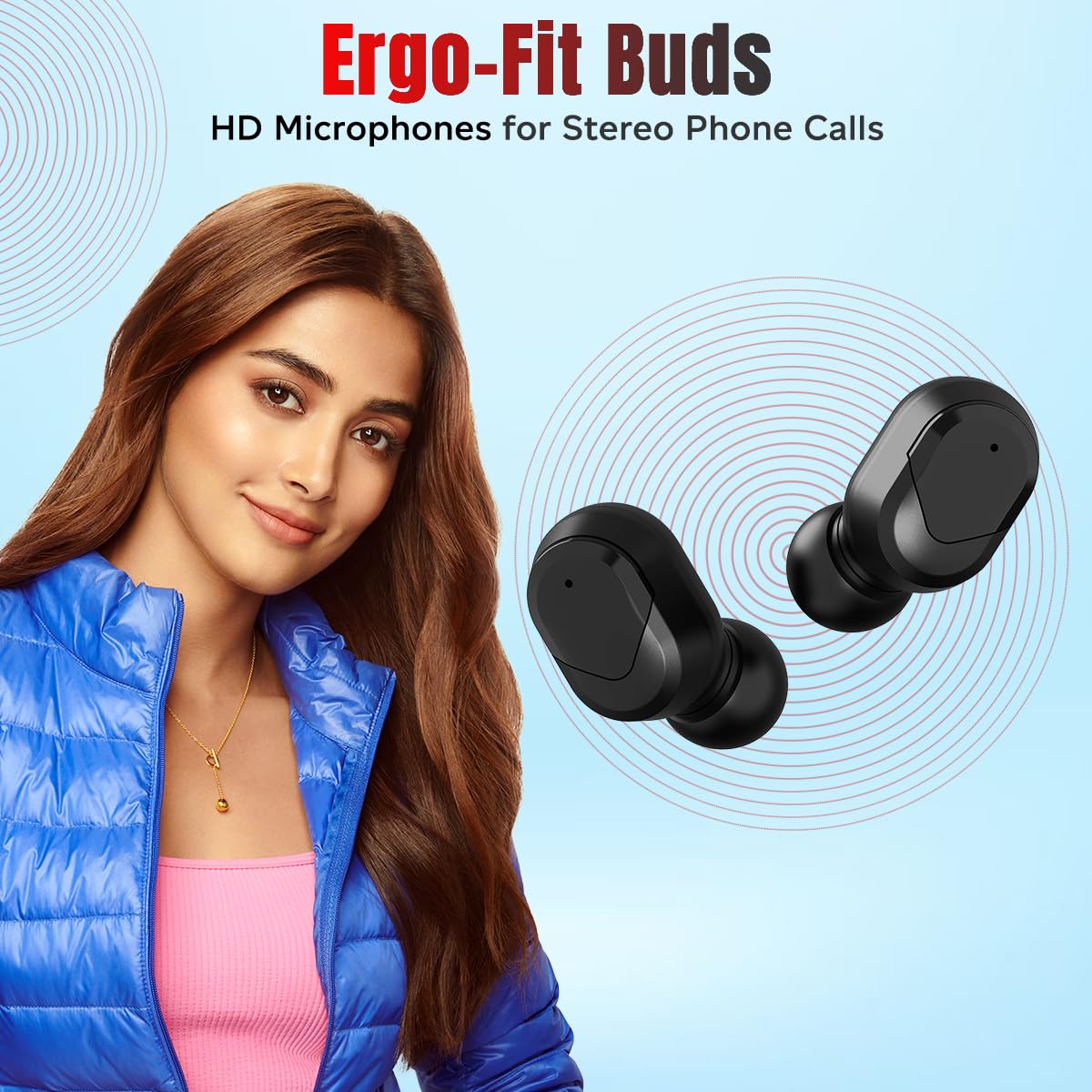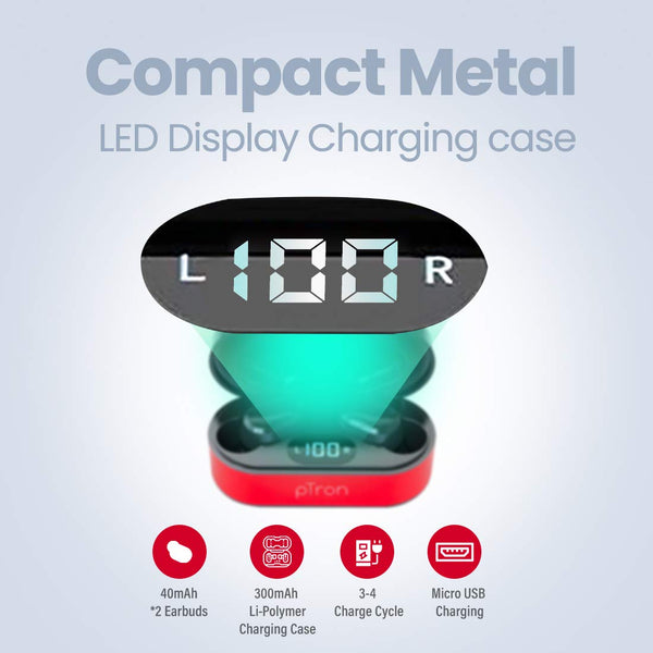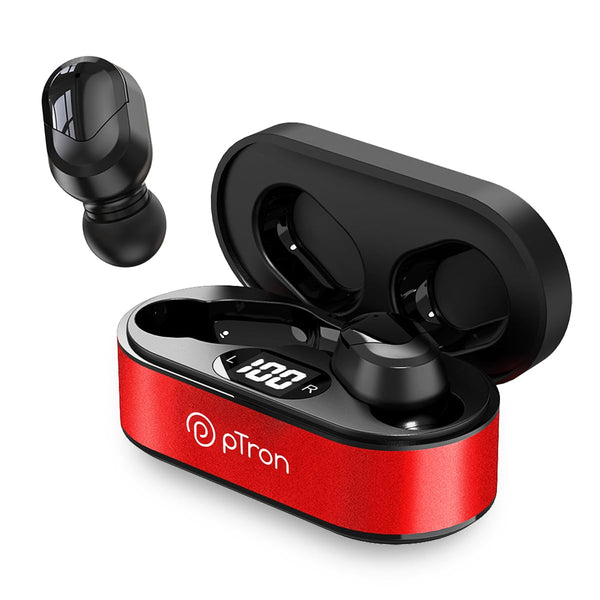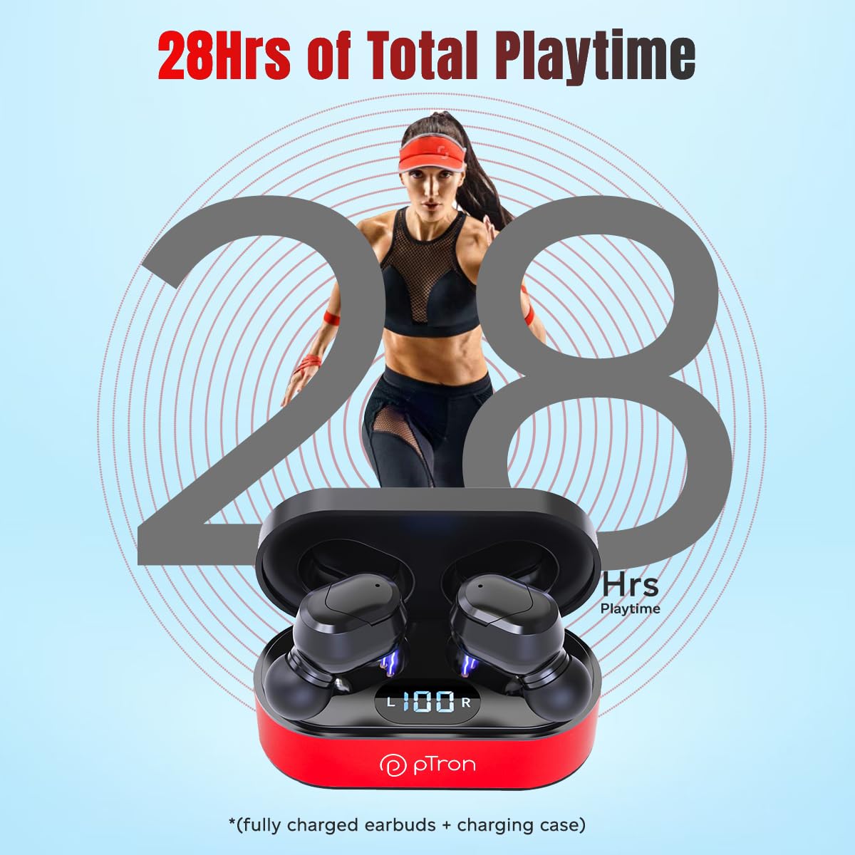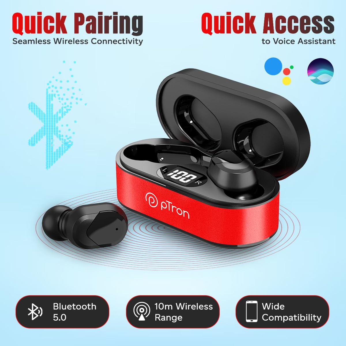 pTron Bassbuds Plus in-Ear TWS Earbuds with HD Mics, Bluetooth 5.0 Headphones with Immersive Sound, Stereo Calls, 28Hrs Playtime, Voice Assist Ready, IPX4 Water Resistant & Fast Charge (Raging Red)