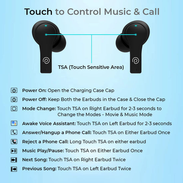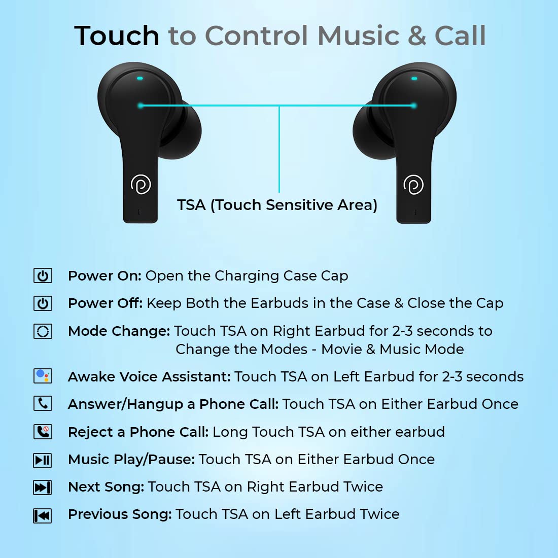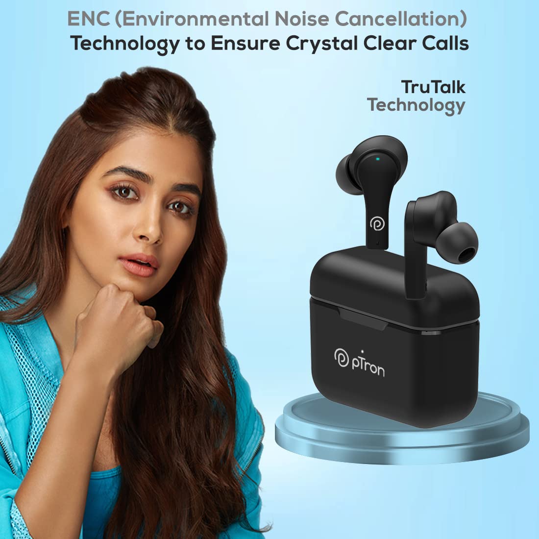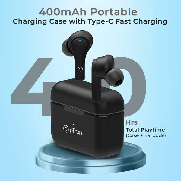 pTron Bassbuds Tango ENC Bluetooth Truly Wireless in Ear Earbuds with mic, Movie Mode, 40Hrs Playtime, Bluetooth Headphones 5.1, Deep Bass, Touch Control TWS Earbuds & Type-C Fast Charging (Black)