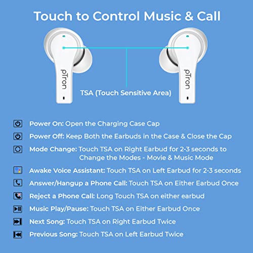 PTron Bassbuds Tango ENC Bluetooth Truly Wireless in Ear Earbuds with mic, Movie Mode, 40Hrs Playtime, Bluetooth Headphones 5.1, Deep Bass, Touch Control TWS Earbuds & Type-C Fast Charging (White)