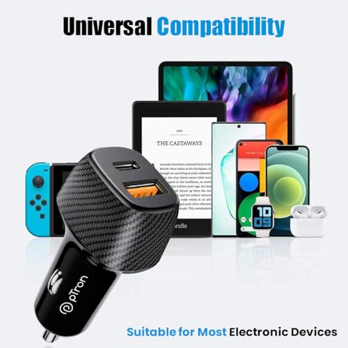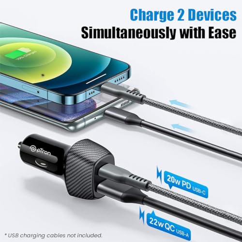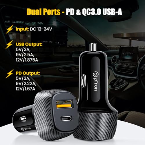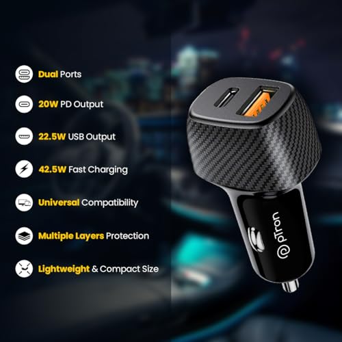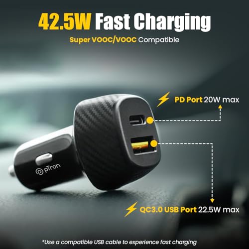 pTron Bullet Zip Mini 42.5W Car Charger with Dual Output, Super VOOC/VOOC Compatible, Fast Charging 20W Type-C/PD & 22.5W USB QC 3.0A & Multiple Protection Layers (Black)