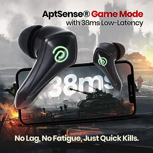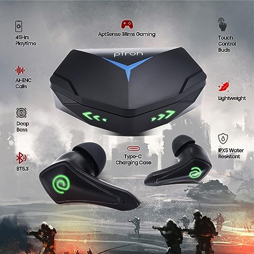 pTron Newly Launched Bassbuds B91 Plus TWS Earbuds with 38ms Gaming Low Latency, AI-ENC Stereo Calls, 45Hrs Playtime, Dual HD Mic, in-Ear Bluetooth 5.3 Headphones, Fast Type-C Charging & IPX5 (Black)