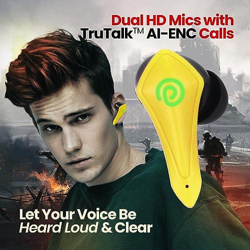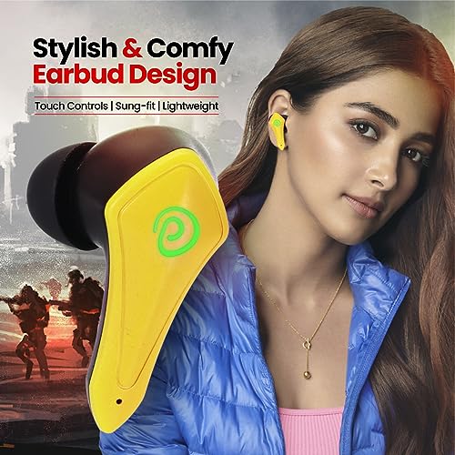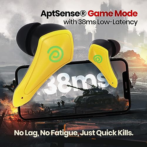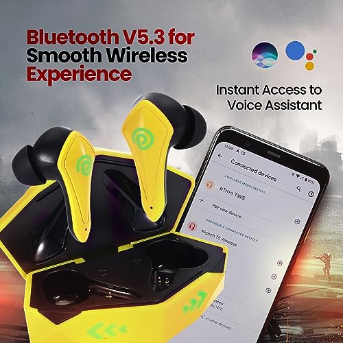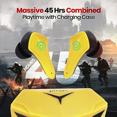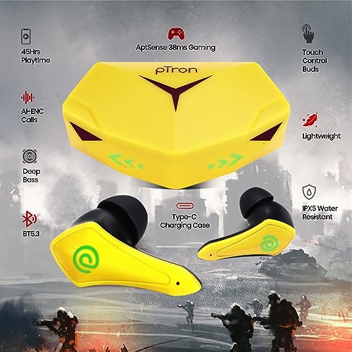 pTron Newly Launched Bassbuds B91 Plus TWS Earbuds with 38ms Gaming Low Latency, AI-ENC Stereo Calls, 45Hrs Playtime, Dual HD Mic, In-Ear Bluetooth 5.3 Headphones, Fast Type-C Charging & IPX5 (Yellow)