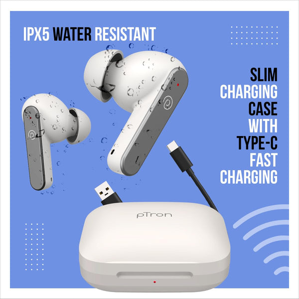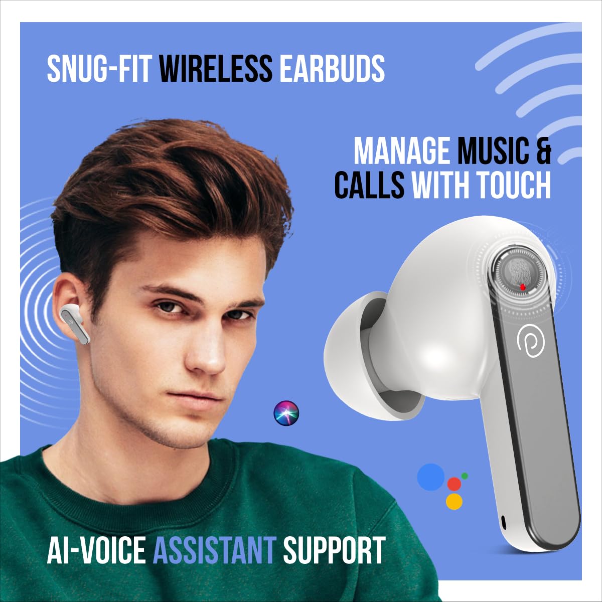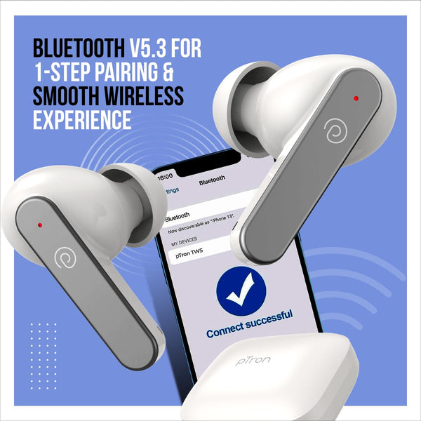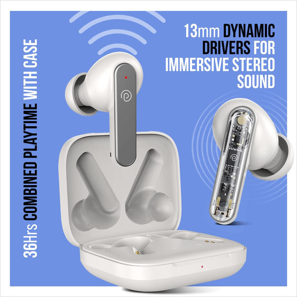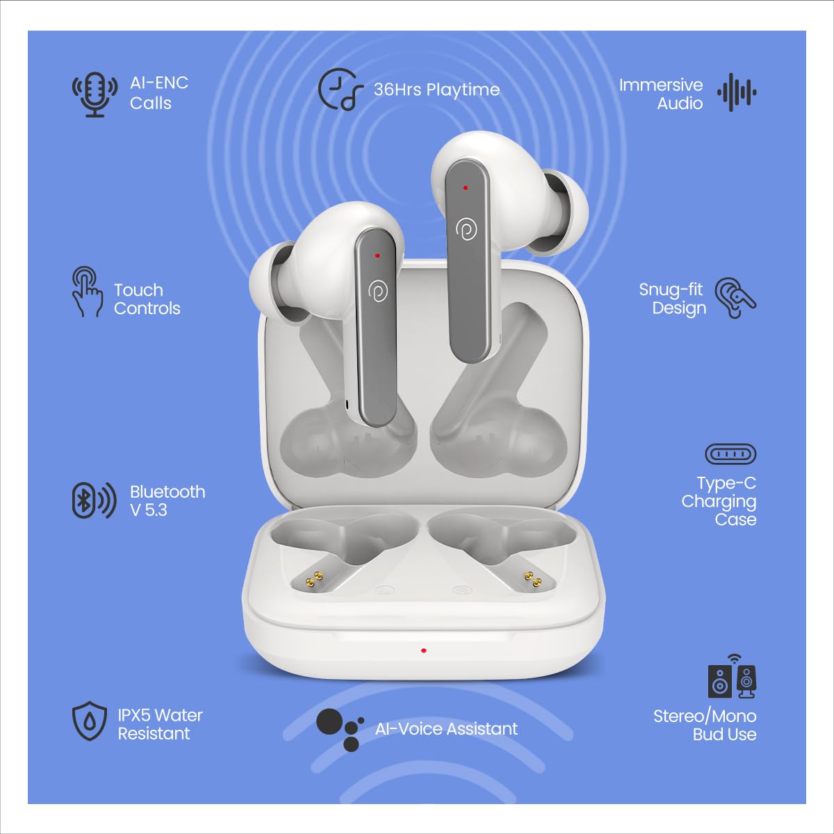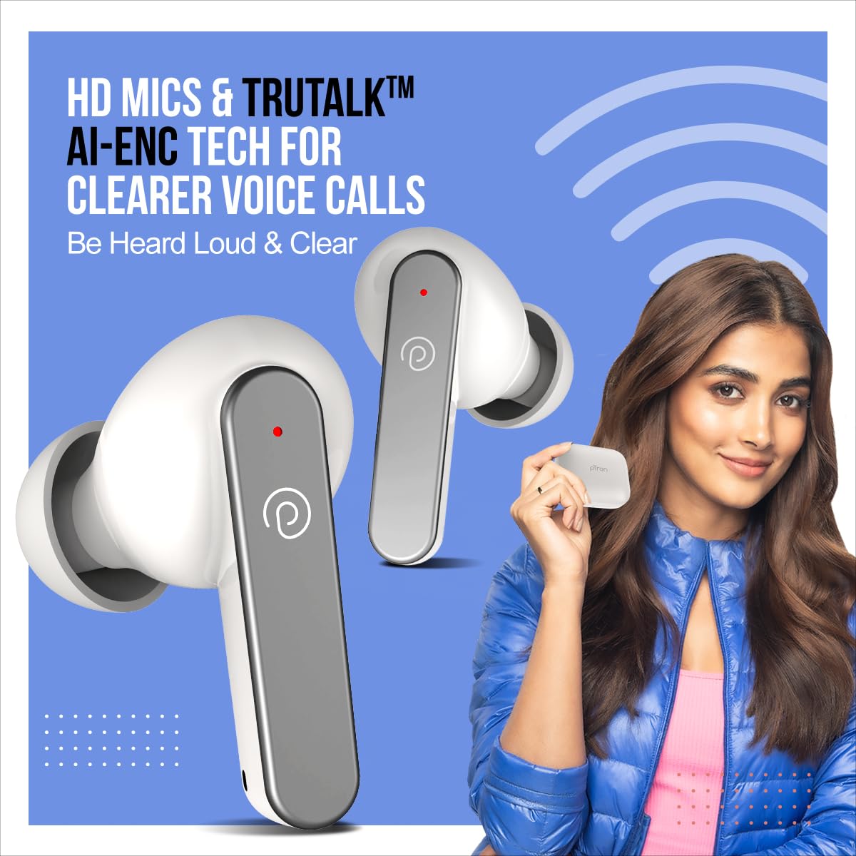 pTron Newly Launched Bassbuds Gomax TWS Earbuds, TruTalk AI-ENC Calls, 36Hrs Playtime, 13mm Drivers, in-Ear Bluetooth 5.3 Wireless Headphones, Voice Assistant, Type-C Fast Charging & IPX5 (White)
