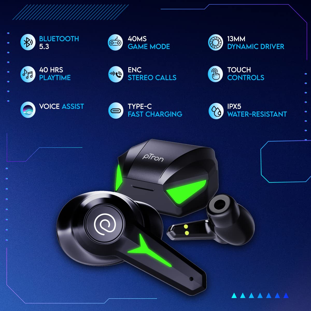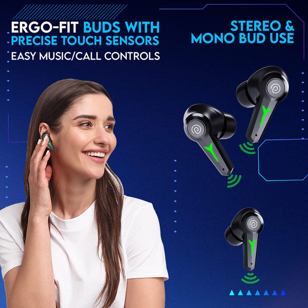PTron Newly Launched PlayBuds 2 TruTalk AI-ENC HD Calls in-Ear TWS Earbuds, 40ms Game/Music Modes, 45Hrs Playtime, Bluetooth 5.3 Headphones, Type-C Fast Charging & IPX5 Water-Resistant (Black)