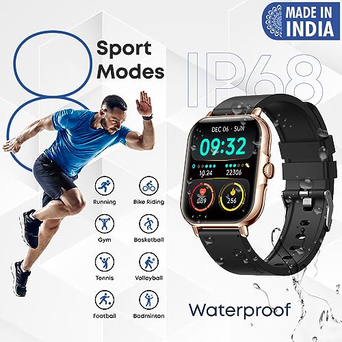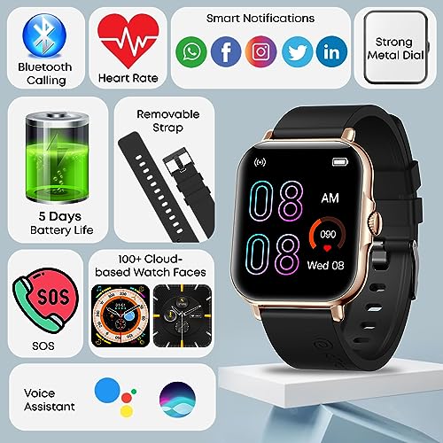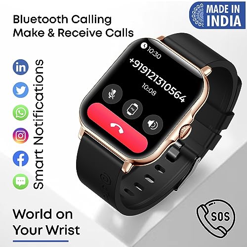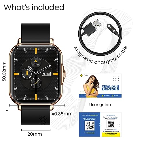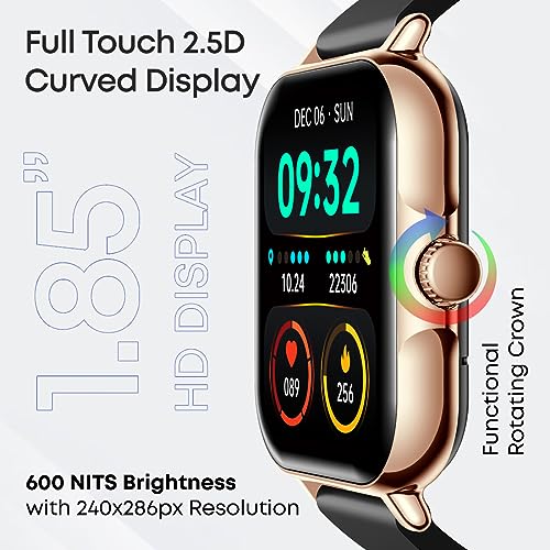 pTron Newly Launched Reflect Callz Smartwatch with Bluetooth Calling, 1.85" Full Touch Display, 600 NITS, Digital Crown, 100+ Watch Faces, HR, SpO2, Sports Mode, 5 Days Battery Life & IP68 (Gold)