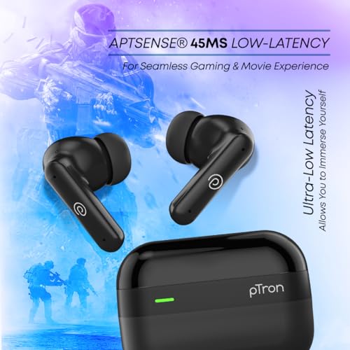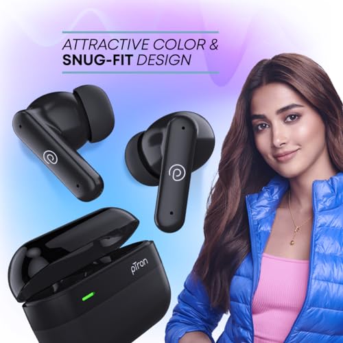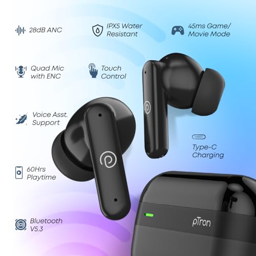pTron Newly Launched Zenbuds 1 ANC Earbuds, 28dB Active Noise Cancellation TWS, Quad Mic TruTalk ENC Calls, 60Hrs Playtime, 45ms Game/Movie Mode & in-Ear Bluetooth 5.3 Wireless Headphones (Black)