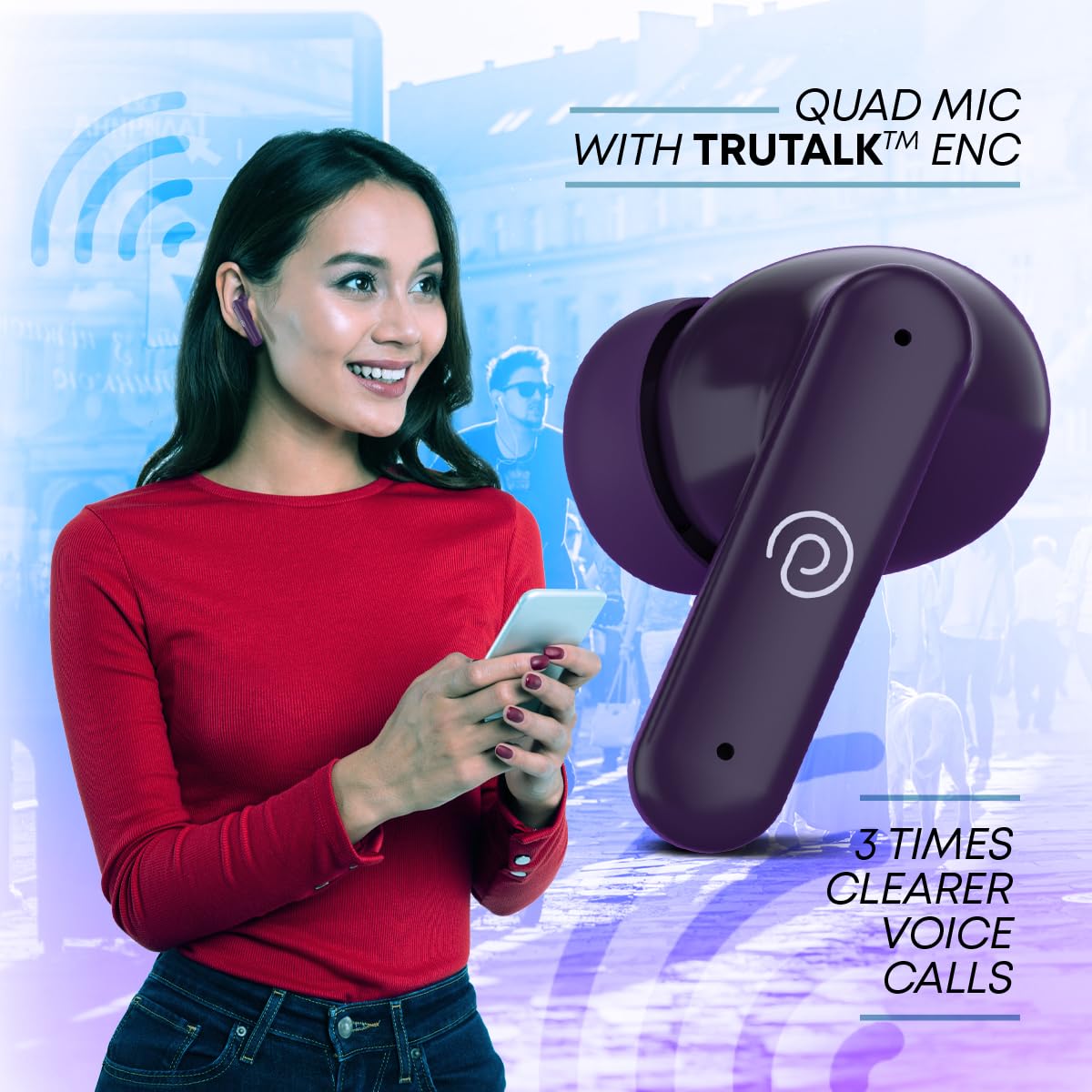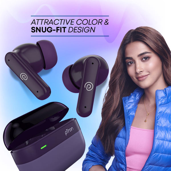 pTron Newly Launched Zenbuds 1 ANC Earbuds, 28dB Active Noise Cancellation TWS, Quad Mic TruTalk ENC Calls, 60Hrs Playtime, 45ms Game/Movie Mode & in-Ear Bluetooth 5.3 Wireless Headphones (Purple)