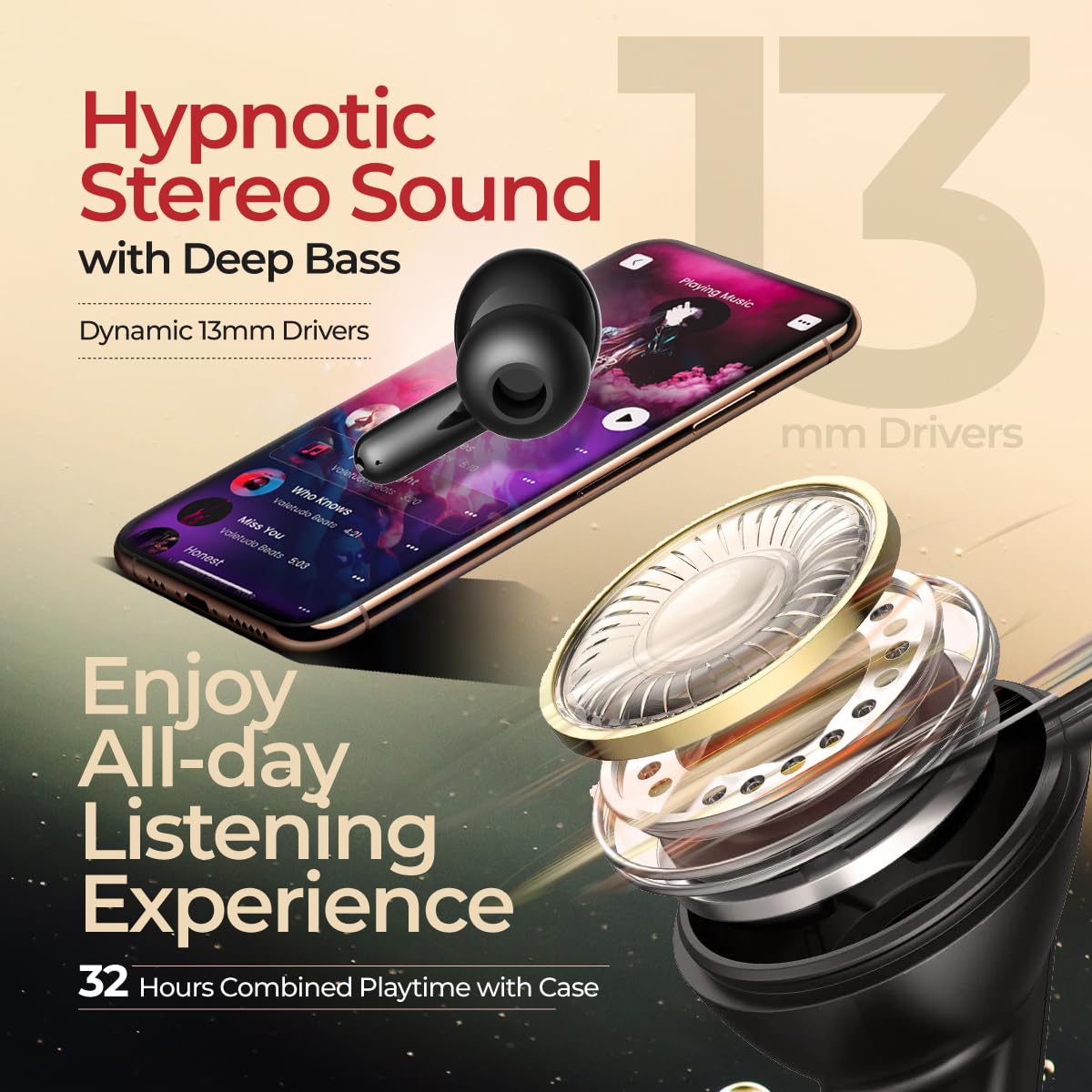 pTron Newly Launched Zenbuds Evo TWS Earbuds,Ai-Trutalk Enc Calls,45Ms Movie/Music Modes,Deep Bass,32Hrs Playtime,Bluetooth 5.3 Headphones,Ipx5 Water Resistant&Type-C Fast Charging (Black),in-Ear
