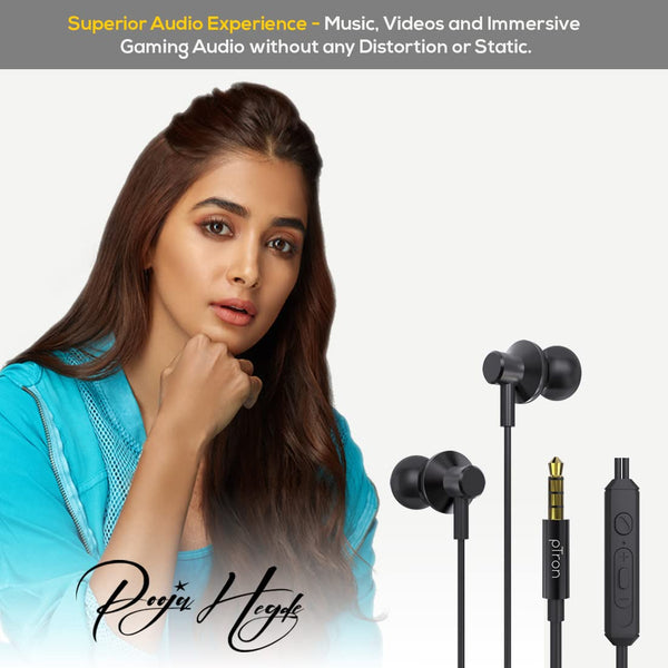 pTron Pride Lite HBE (High Bass Earphones) in Ear Wired Earphones with Mic, 10mm Powerful Driver for Stereo Audio, Noise Cancelling Headset with 1.2m Tangle-Free Cable & 3.5mm Aux - (Black)