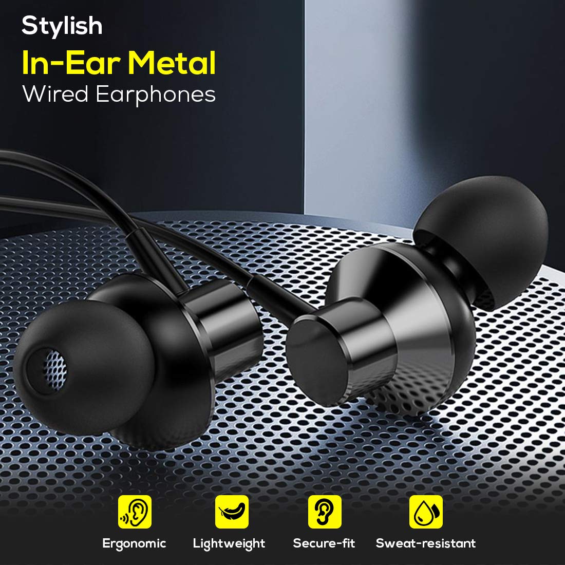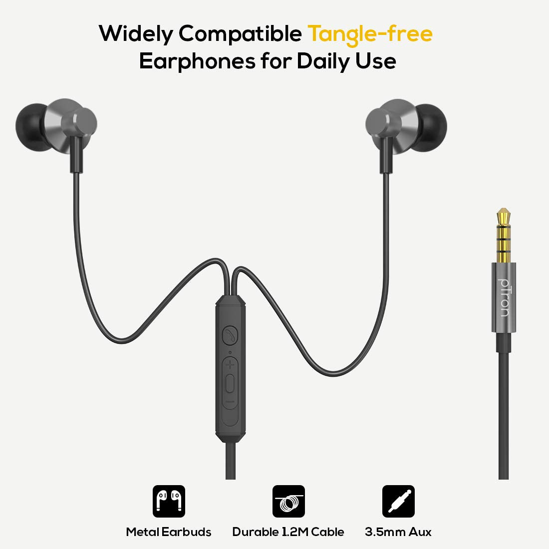 pTron Pride Lite HBE (High Bass Earphones) in Ear Wired Earphones with Mic, 10mm Powerful Driver for Stereo Audio, Noise Cancelling Headset with 1.2m Tangle-Free Cable & 3.5mm Aux (Grey)