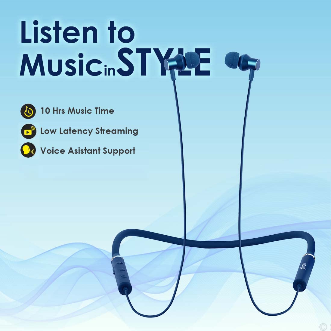 pTron Tangentbeat in-Ear Bluetooth Wireless Headphones with Mic, Punchy Bass, 10mm Drivers, Clear Calls, Dual Pairing, Fast Charging, Magnetic Buds, Voice Assist & IPX4 Wireless Neckband (Dark Blue)