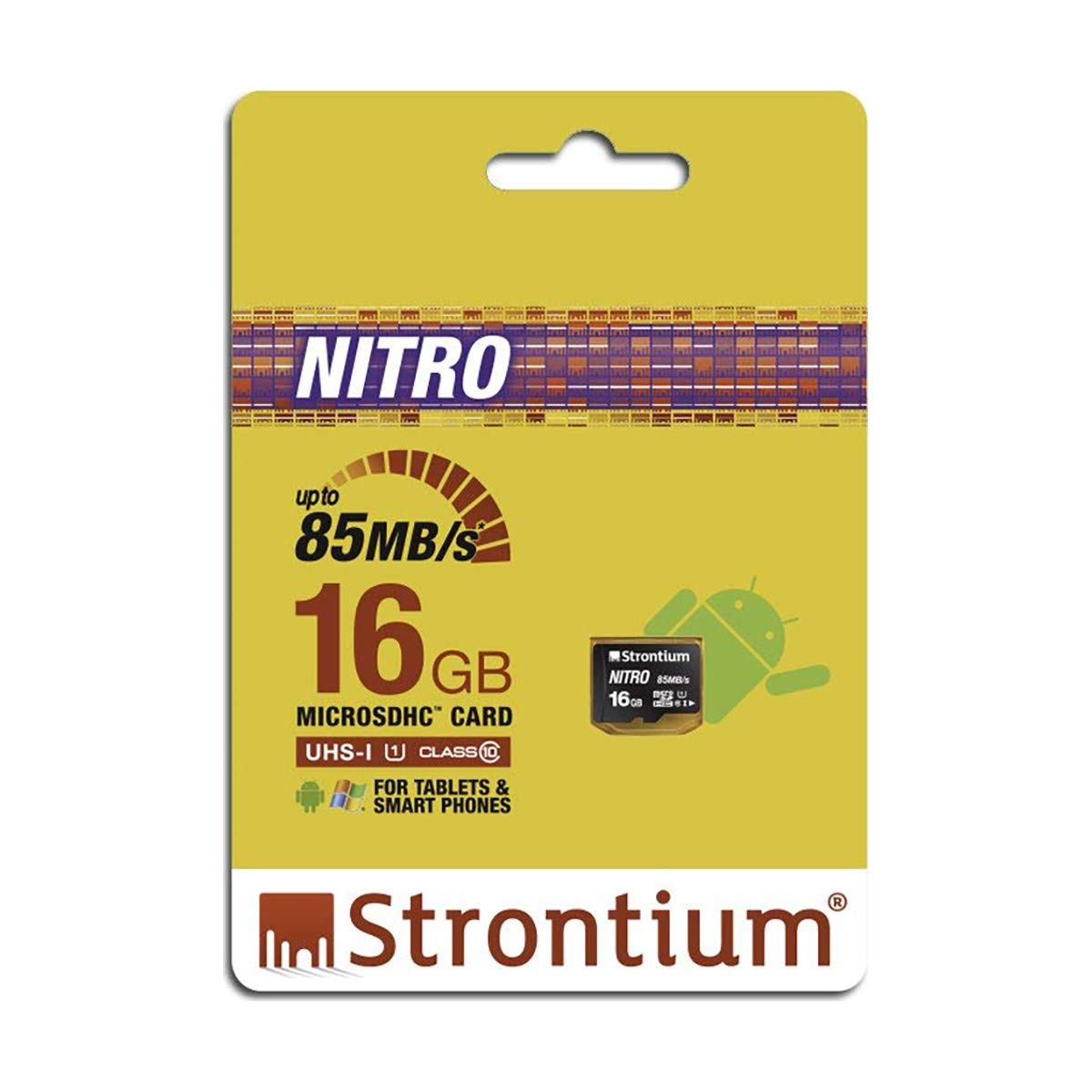 Strontium Nitro 16GB Micro SDHC Memory Card 85MB/s UHS-I U1 Class 10 High Speed for Smartphones Tablets Drones Action Cams (SRN16GTFU1QR)