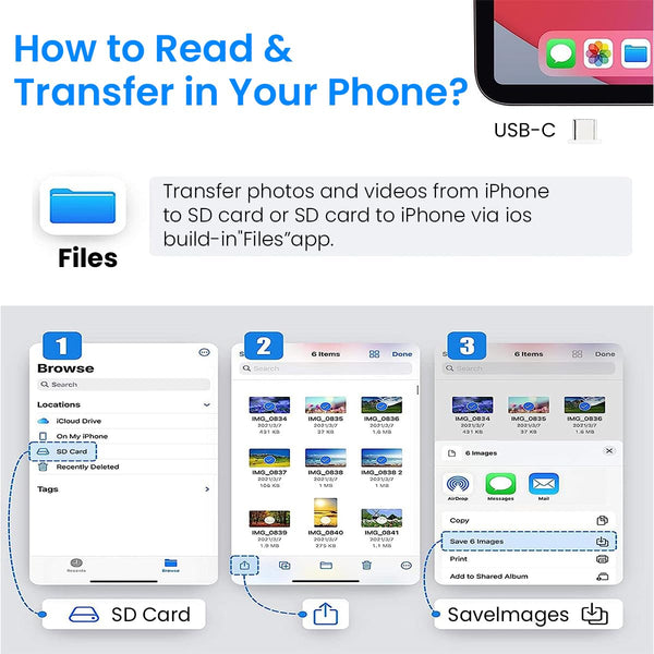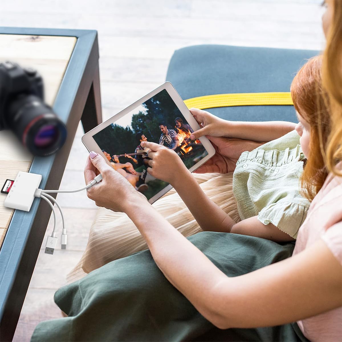 Verilux® Card Reader 5 in 1 SD Card Reader Micro SD Card Reader with Light-ning Port and 2 USB3.0 Ports Memory Card Reader Support Charging and High Speed Transfer for iPhone, iPad, PC, Laptop