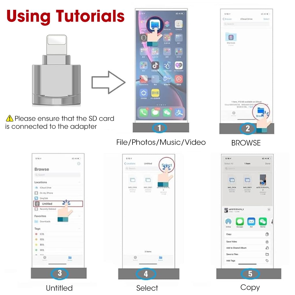 Verilux® Micro SD Card Reader for iPhone iPad, Micro SD/TF Card Reader Memory Card Reader for iPhone Plug and Play Card Reader for iPhone 13/12/Pro/11/X/XR/Max