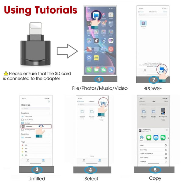 Verilux® Micro SD Card Reader for iPhone iPad, Micro SD/TF Card Reader Memory Card Reader for iPhone Plug and Play Card Reader for iPhone 13/12/Pro/11/X/XR/Max