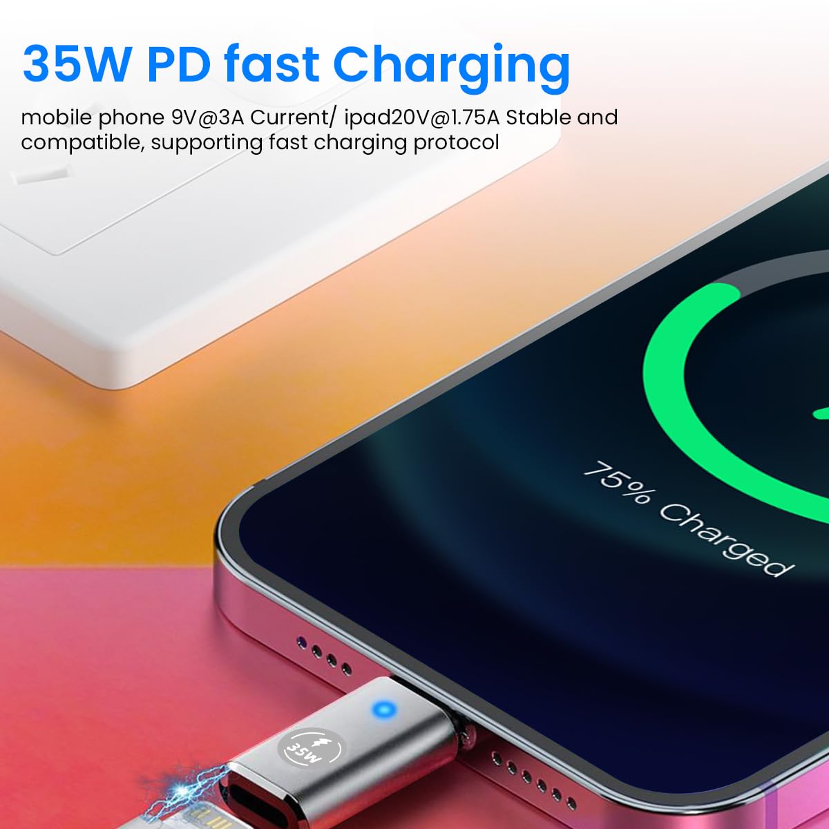 Verilux® USB C Adapter for iPhone, Lightn-ing to USB C Portable 35W Fast Charging USB C Adapter Support Data Sync USB C Adapter for iPhone15/1413/12/11, iPad Air