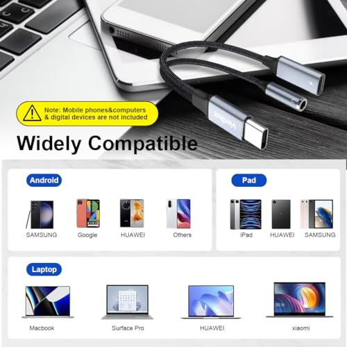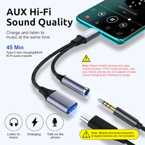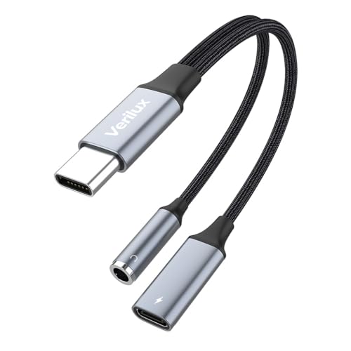 Verilux® USB C to 3.5mm Jack Audio Adapter, 2 in 1 Type C to Aux Audio Jack with PD Fast Charging, Game Sound Card Game Audio Adapter Compatible with Galaxy S22 S21 Ultra 5G S20 S20+ Plus Note 20