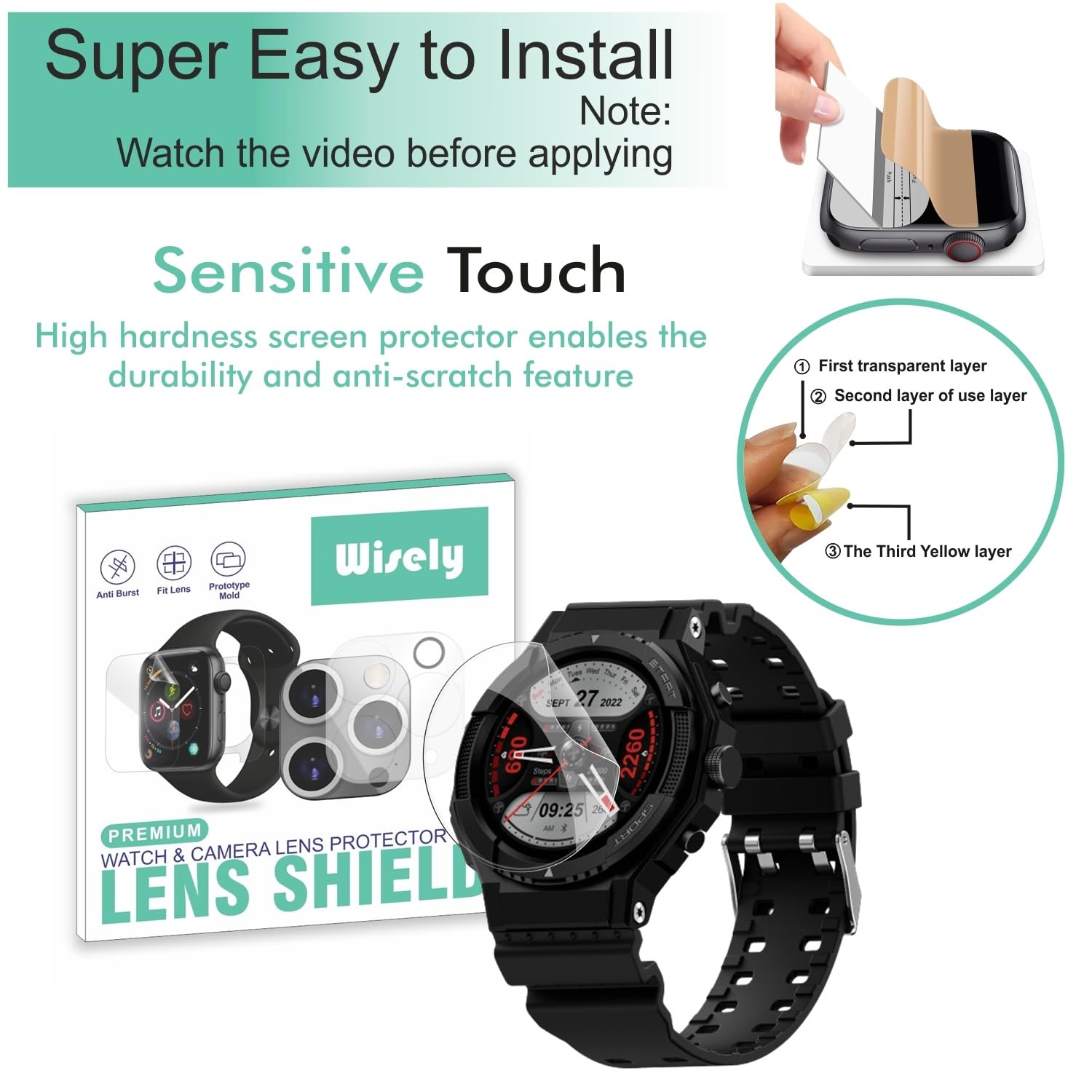 Wisely |3pcs| Screen Guard Protector For Fire Boltt Quest Smartwatch |1.39"| Bubble Free, Easy installation kit, Clear HD, Full Cover