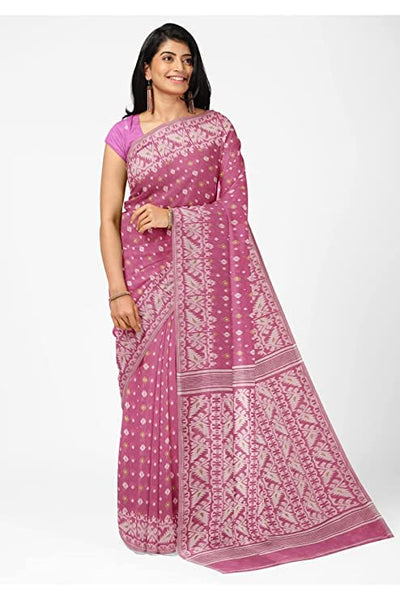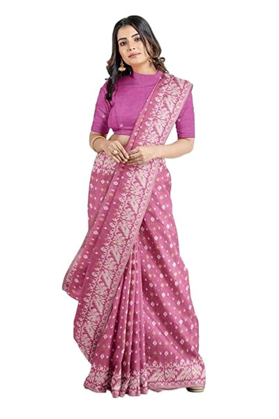 Anchol Saree Women's Traditional Bengal Cotton Silk Jamdani Saree. (Deep Pink)