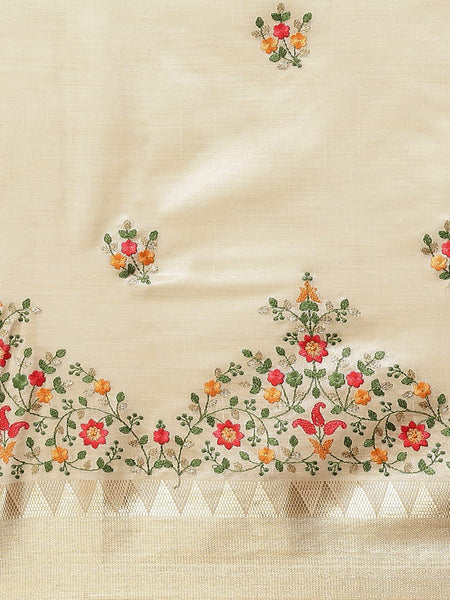 arriva fab Women's Kasavu Cotton Blend Saree With Blouse Piece (Riva1698__White)