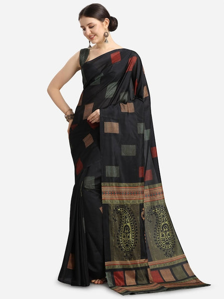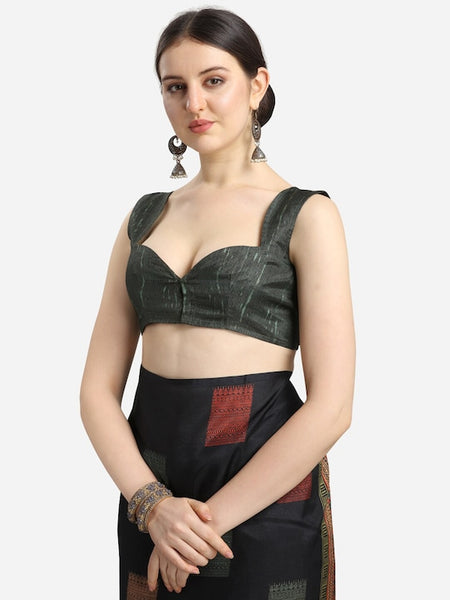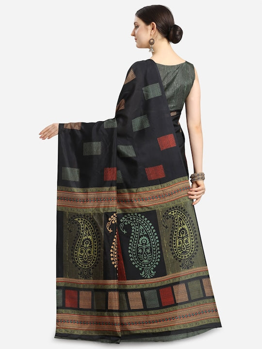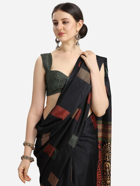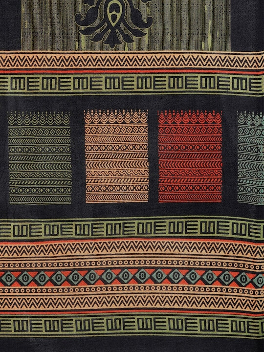 Black & Green Ethnic Motifs Fusion Saree