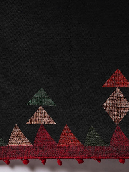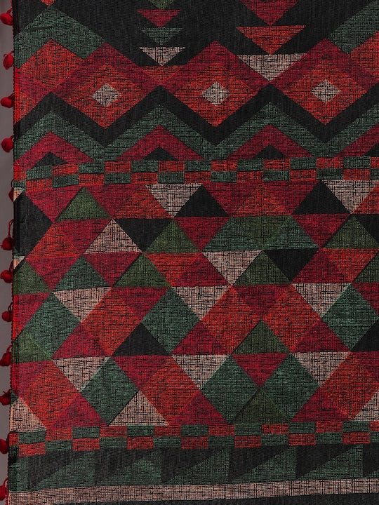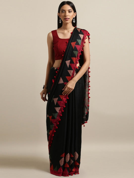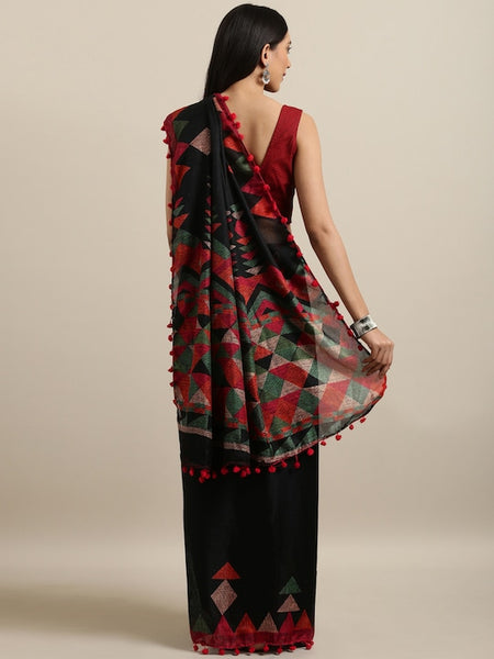 Black & Red Polycotton Printed Saree