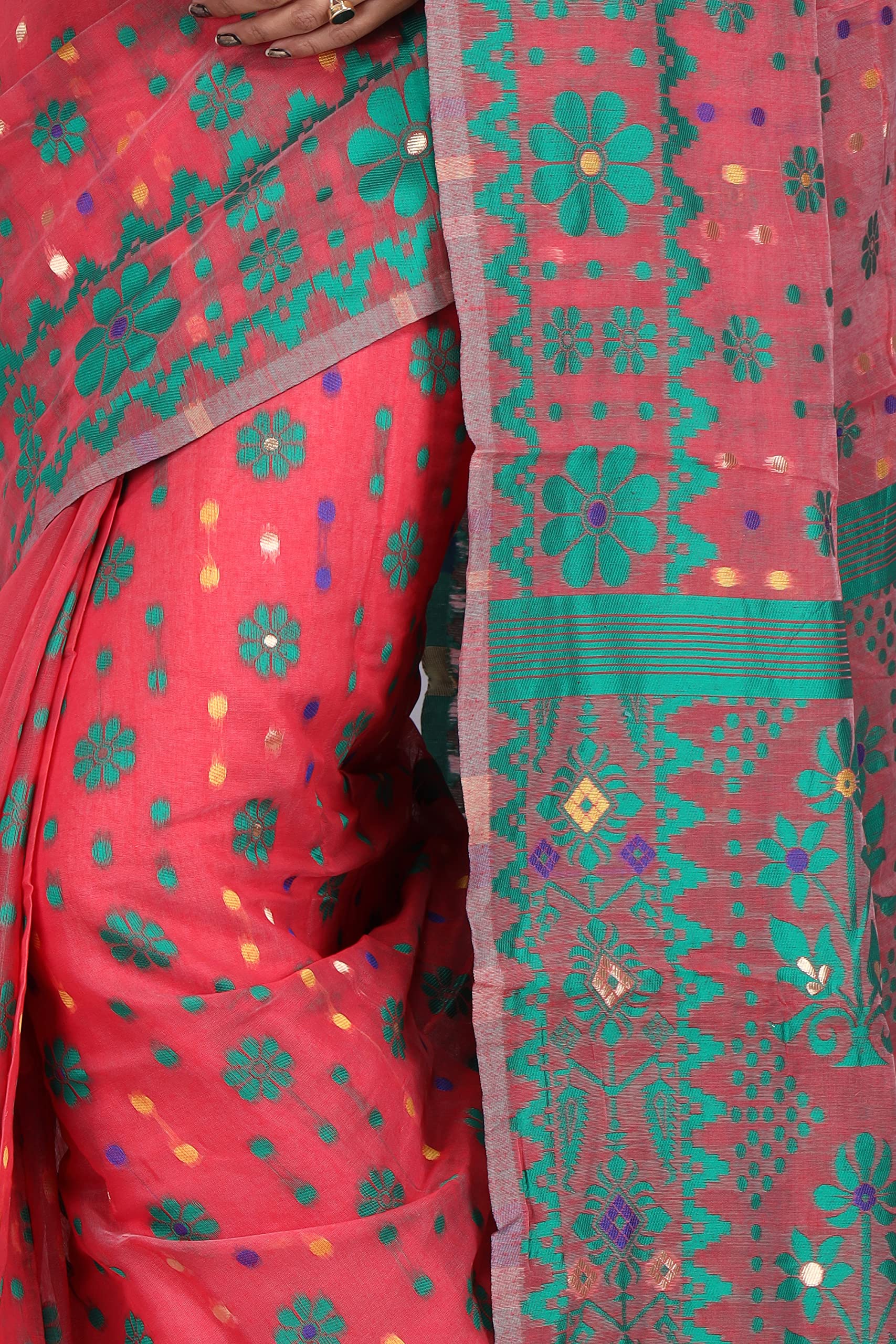 CRAFTONI Small Flower Butik Design Women Dhakai Jamdani Soft Cotton Silk Saree