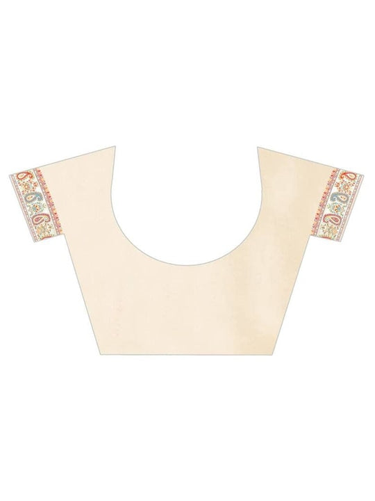 Cream-Coloured & Red Floral Silk Blend Saree