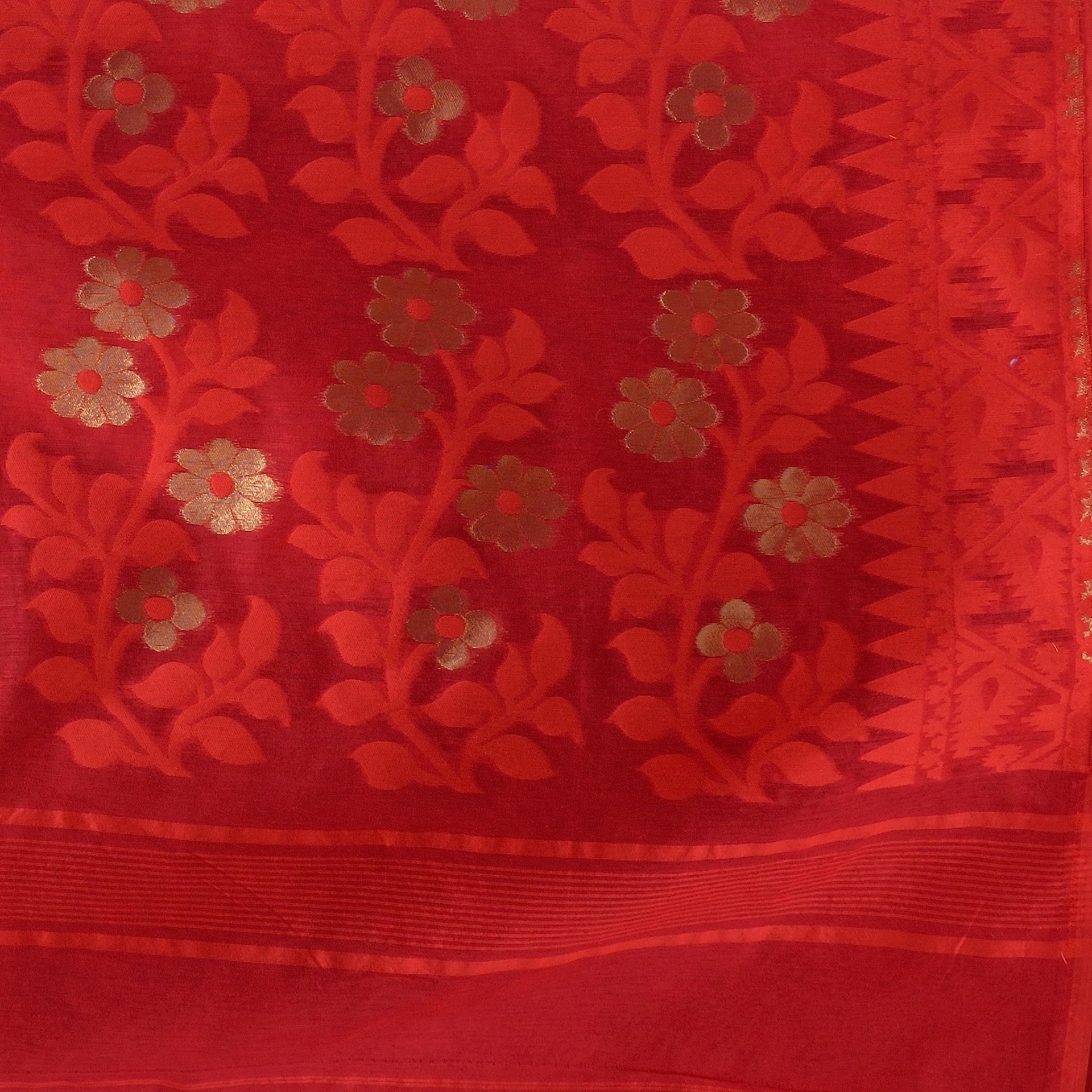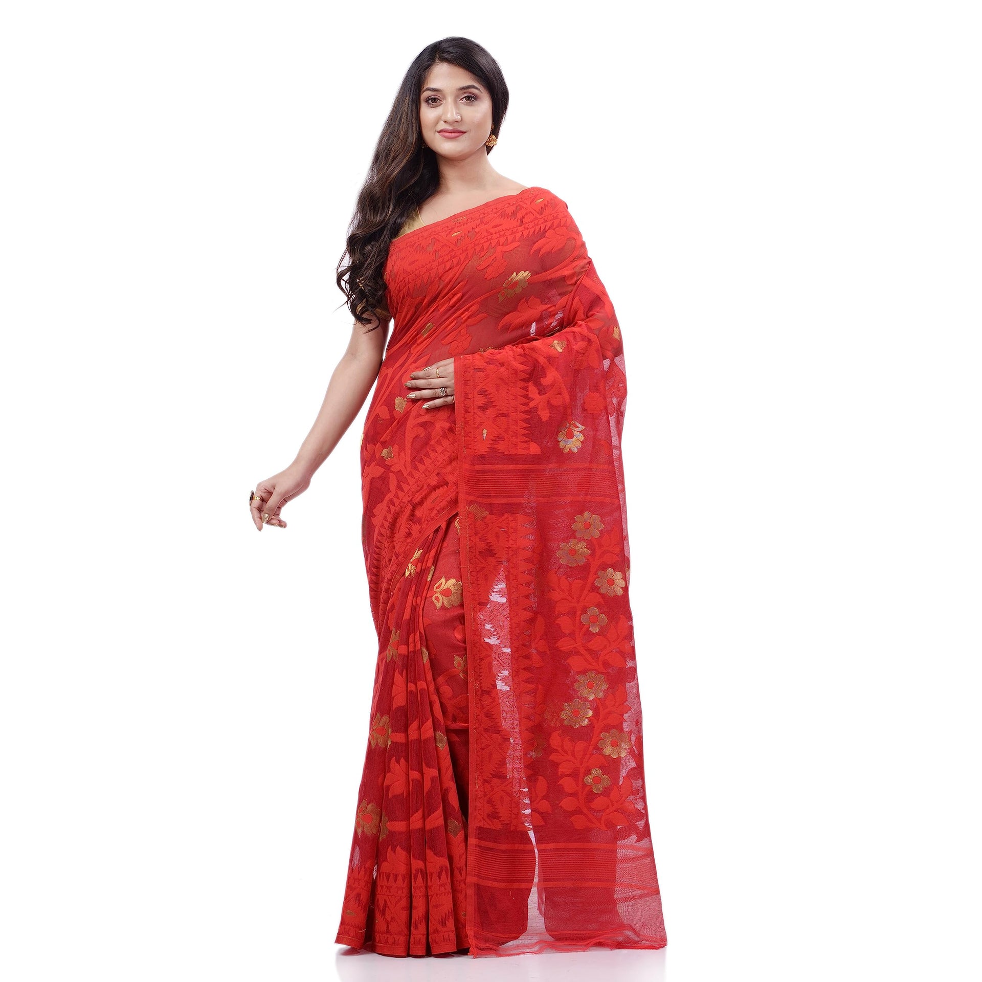 dB DESH BIDESH Women`s Rangabati Resham Dhakai Jamdani Bengal Pure Cotton Handloom Saree without Blouse Piece (Red)