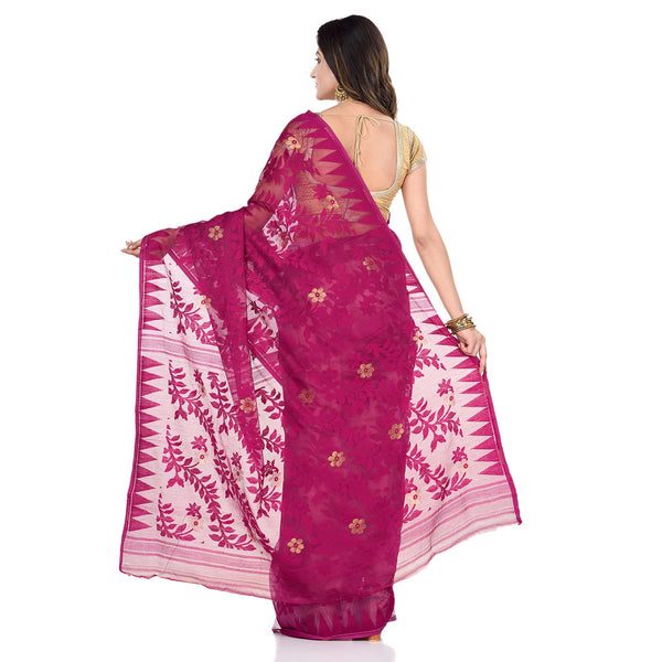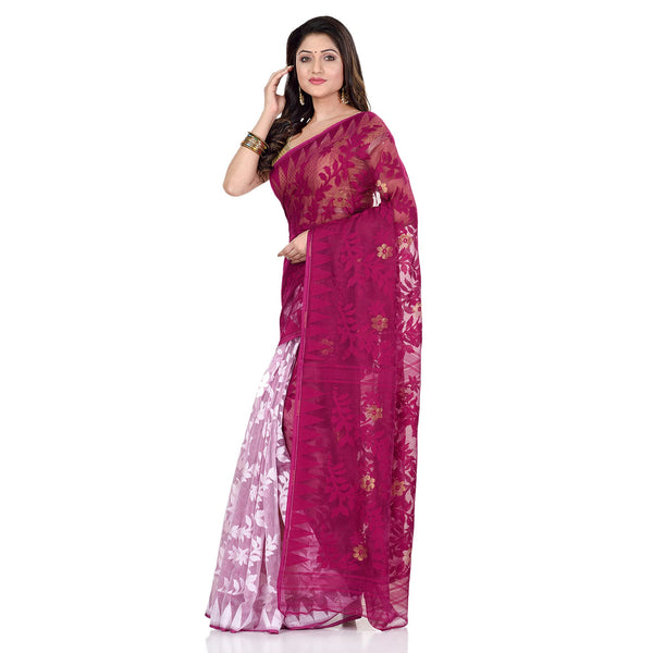 Db Desh Bidesh Women's Jamdani Cotton Saree Without Blouse Piece (Db220622Jamdanitant_Plum Jam White)
