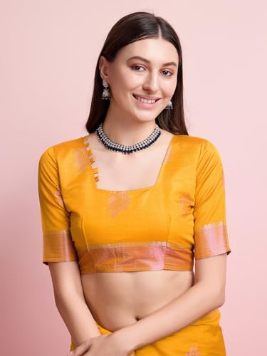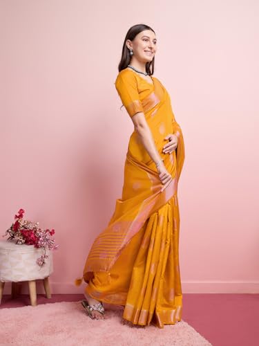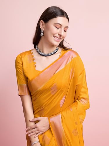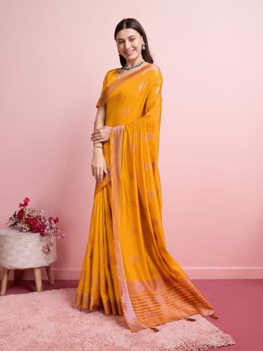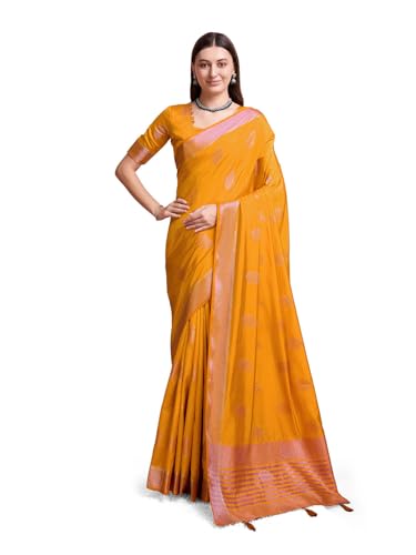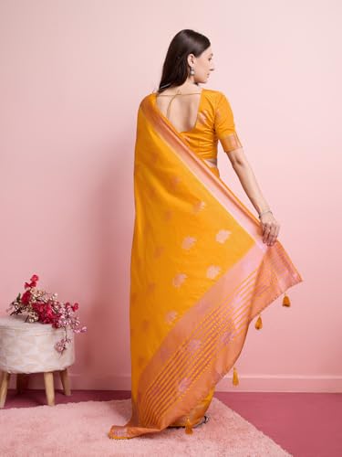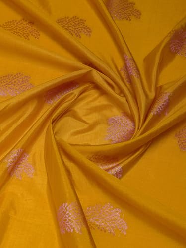 DOI MOI Pure Maheshwari Silk Mustard Colour Hand Dyed Banarasi Sari for women with unstitched blouse piece(MAHESHWARISILK_1017)