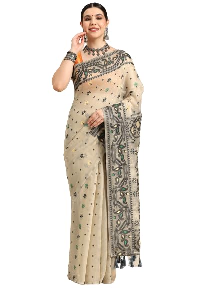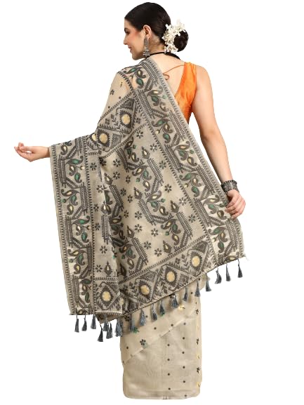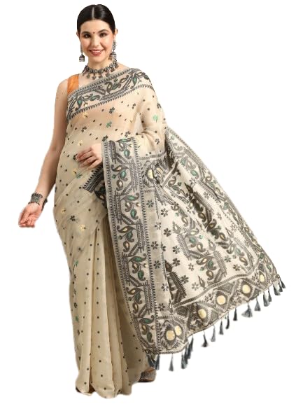 Enthone Women's Pure Cotton Jamdani Saree (Black)