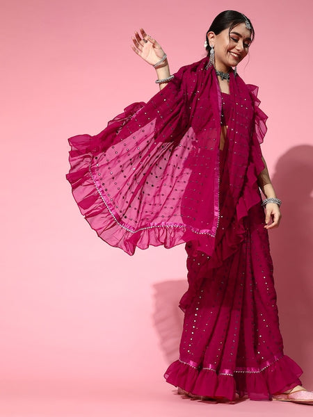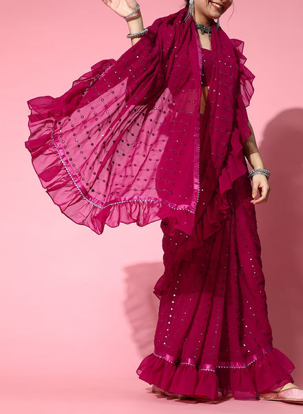 Sku: PNKGLD-FLRL-ZARI-CHIF-SAREE
