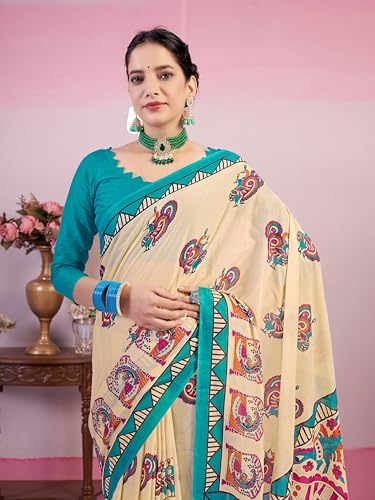 Garden Vareli Traditional Print Pure Cotton Saree with Unstitched Blouse Piece 88470