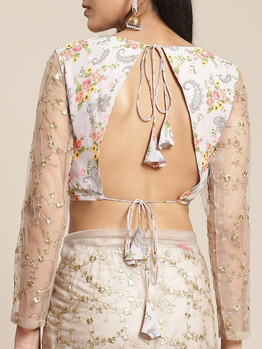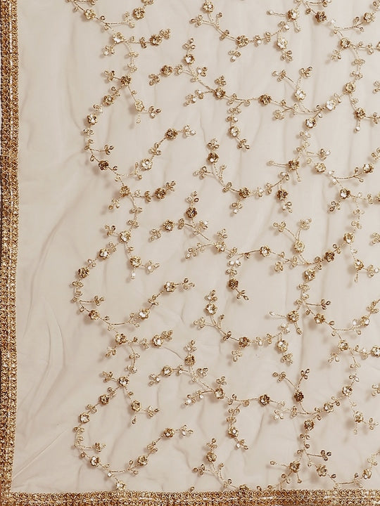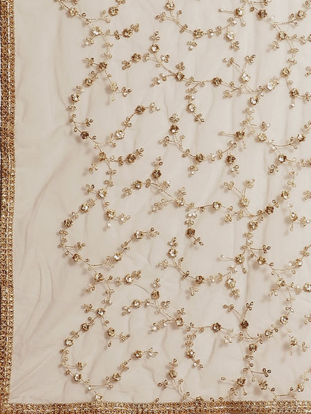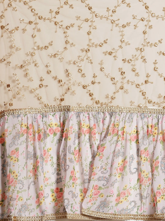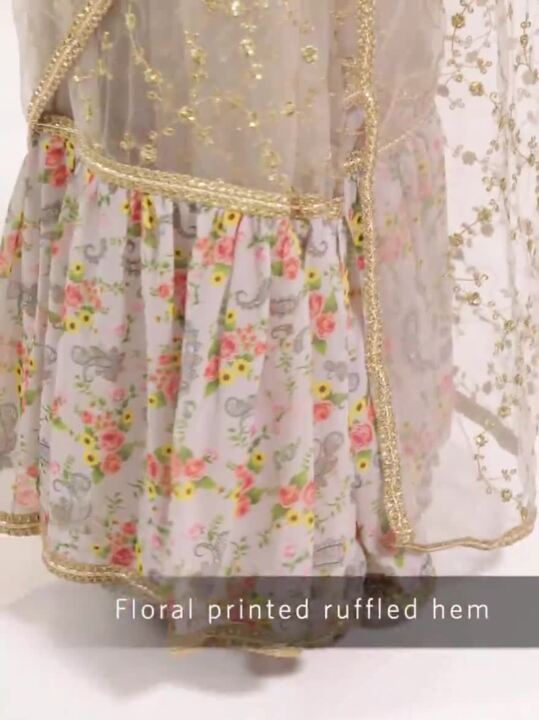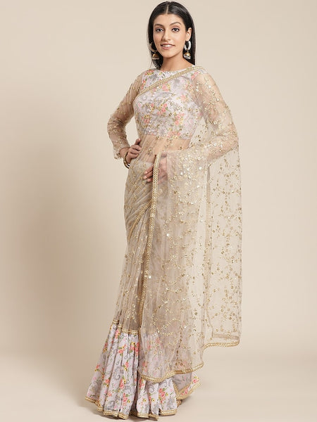 Grey & Golden Net Embroidered Ruffled Saree