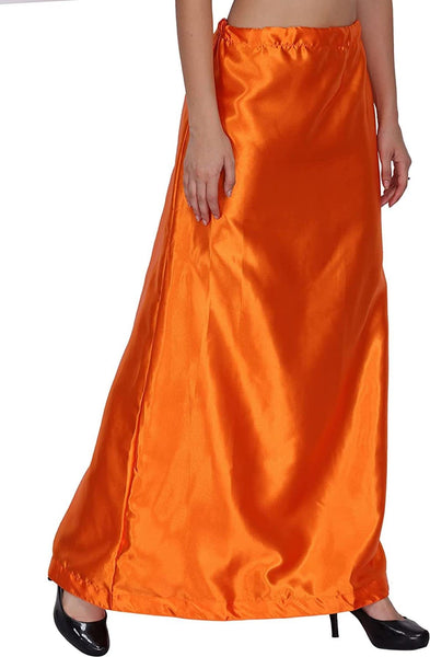 Guddan Women Satin Free Size Petticoat Underskirt Indian Lining for Sari (Orange)