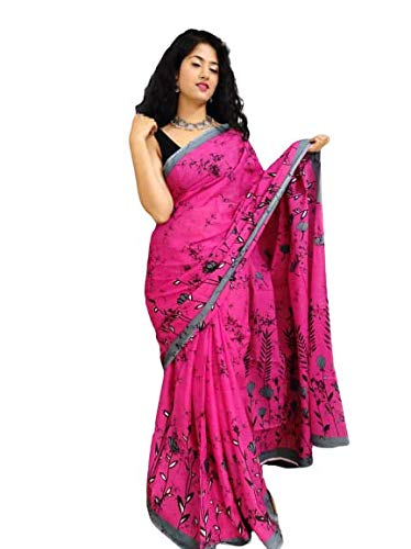 Hand block Printed Cotton mulmul Sari With Blouse Piece (MULTI-CO LOUR_Free Size)