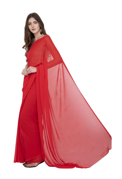 LIME Plain Georgette Red Saree With Blouse Piece For Women (Free Size)