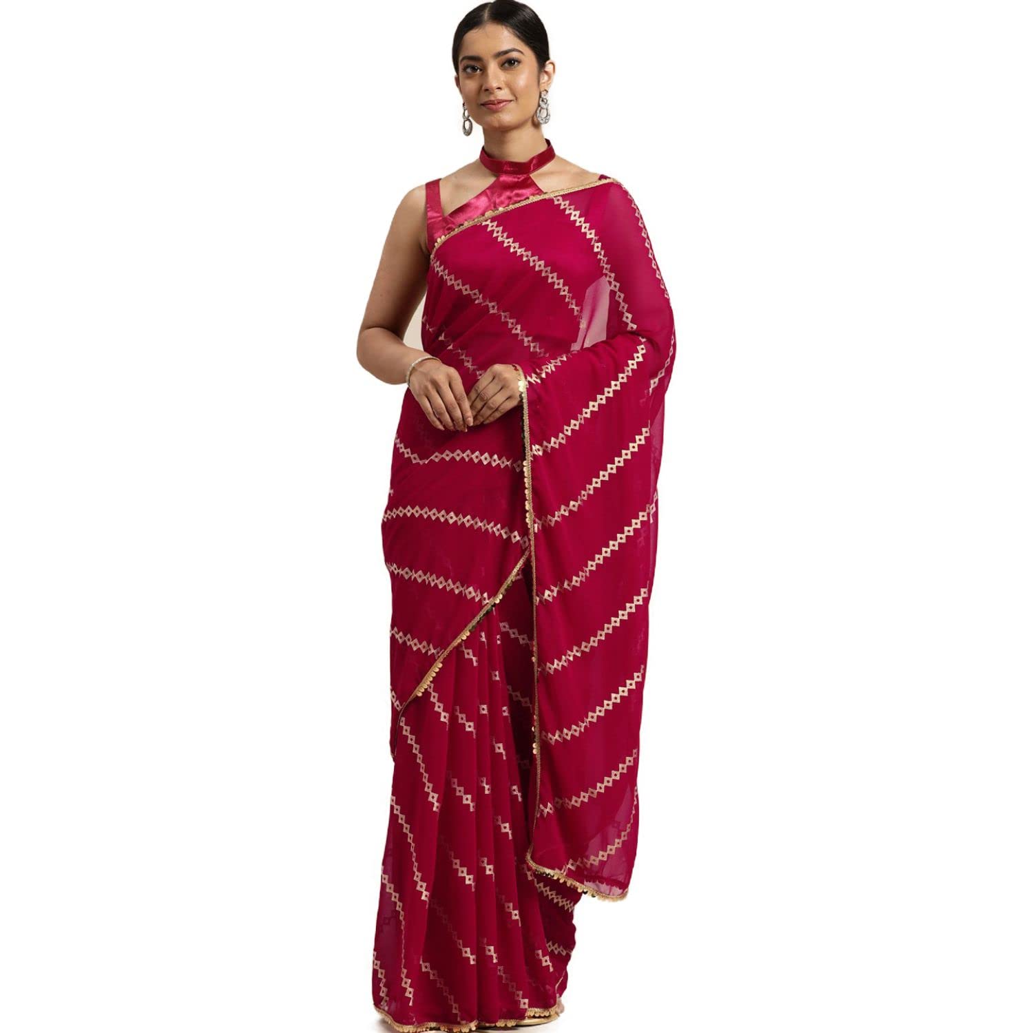 Looks 18 Women's Geometric Print Pure Georgette Saree With Blouse Piece (Georgette-Pink-sari-0222-Free-Size_Pink)