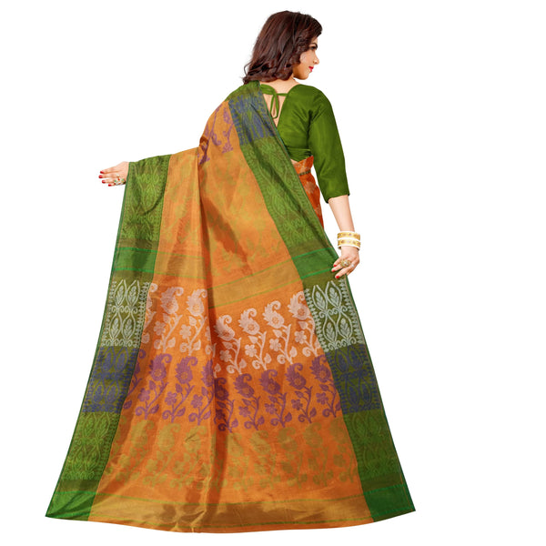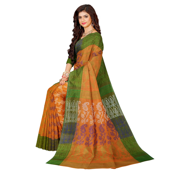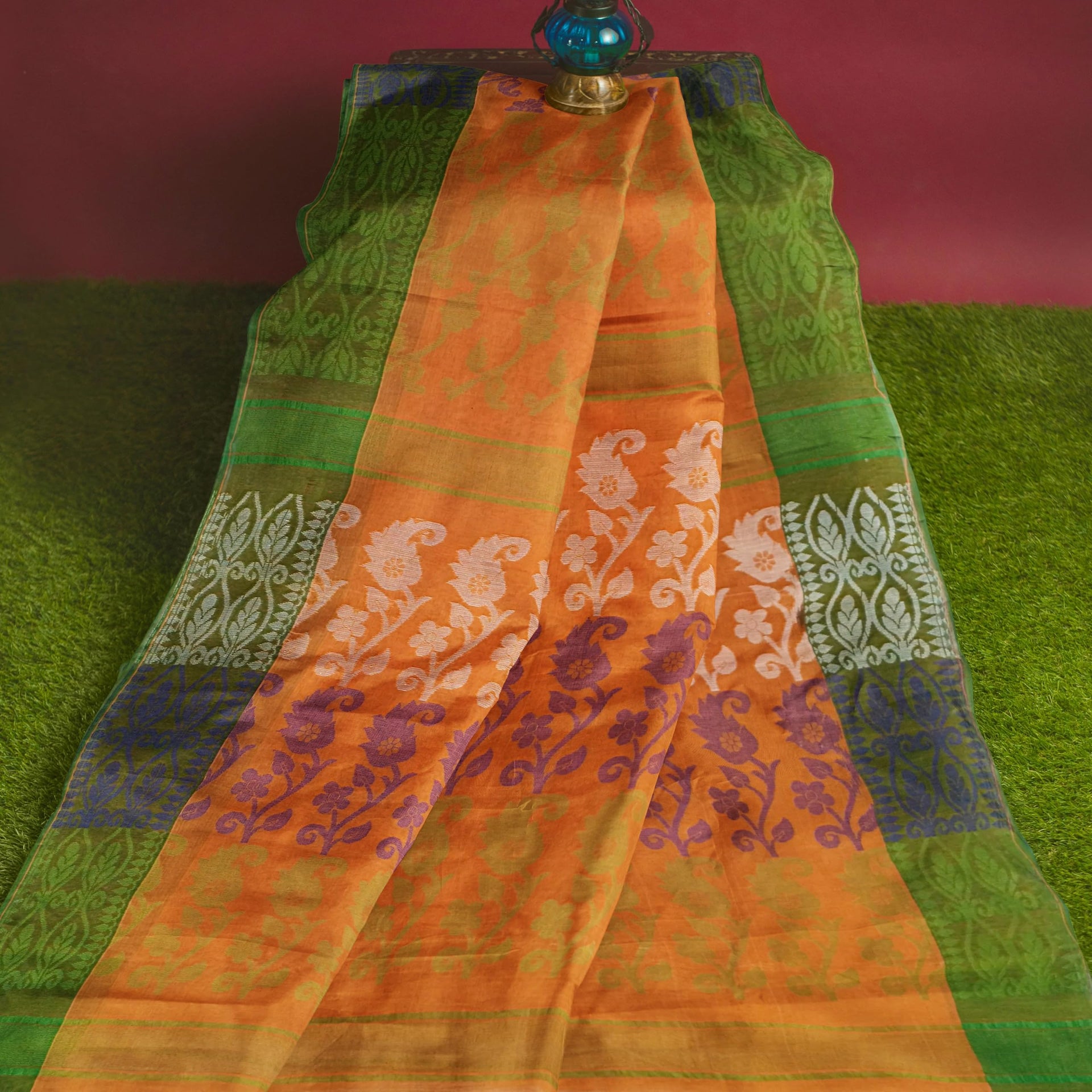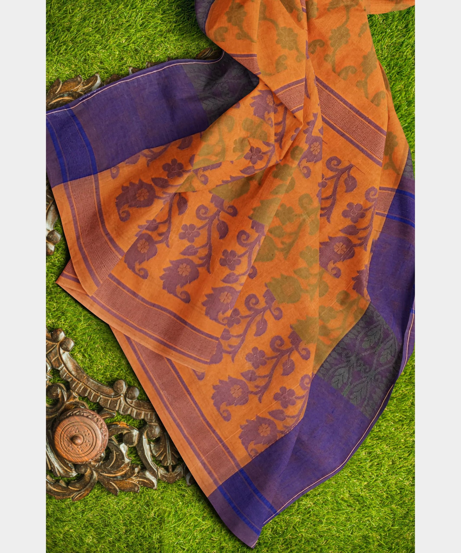 Mayabi Women's Pure Cotton Dhakai Jamdani Tant Saree with All Over Floral Work, Without Blouse Piece - Dusty Orange