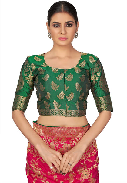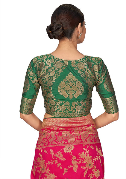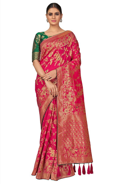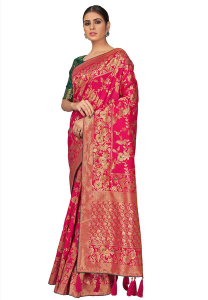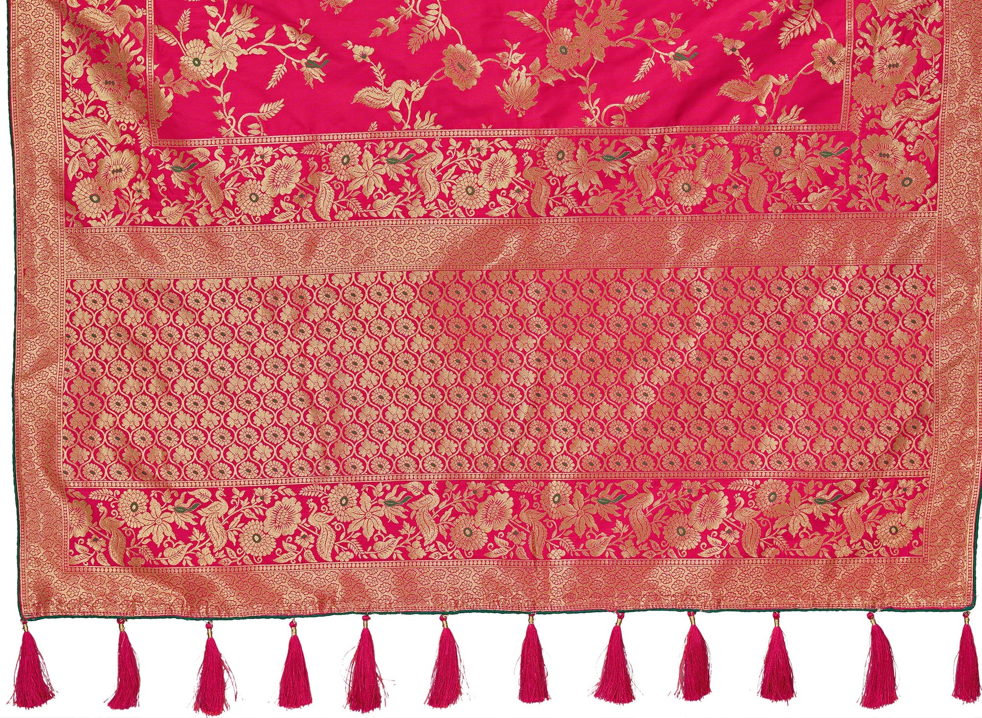 Monjolika Fashion Women's Banarasi Silk Blend Woven Zari With Tussles Saree and Jacquard Woven Blouse Piece (37765 color) (Magenta)