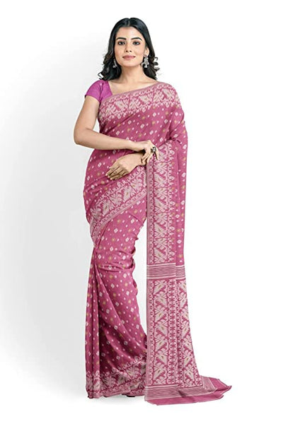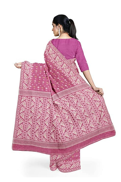 OISHANI SAREE GHOR Women's Traditional Bengal Cotton Silk Jamdani Saree (PINK)