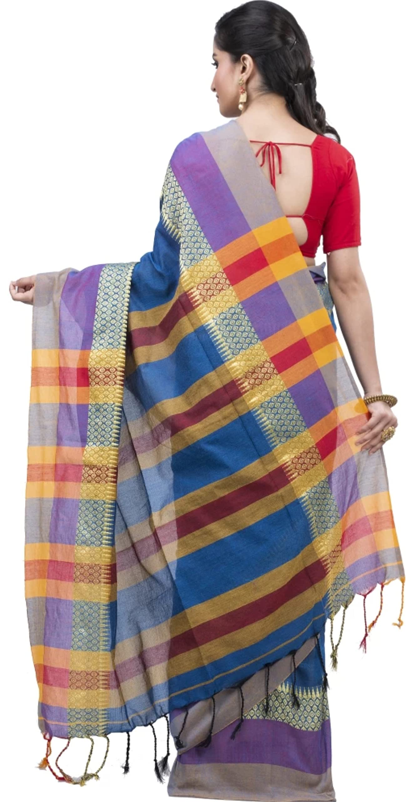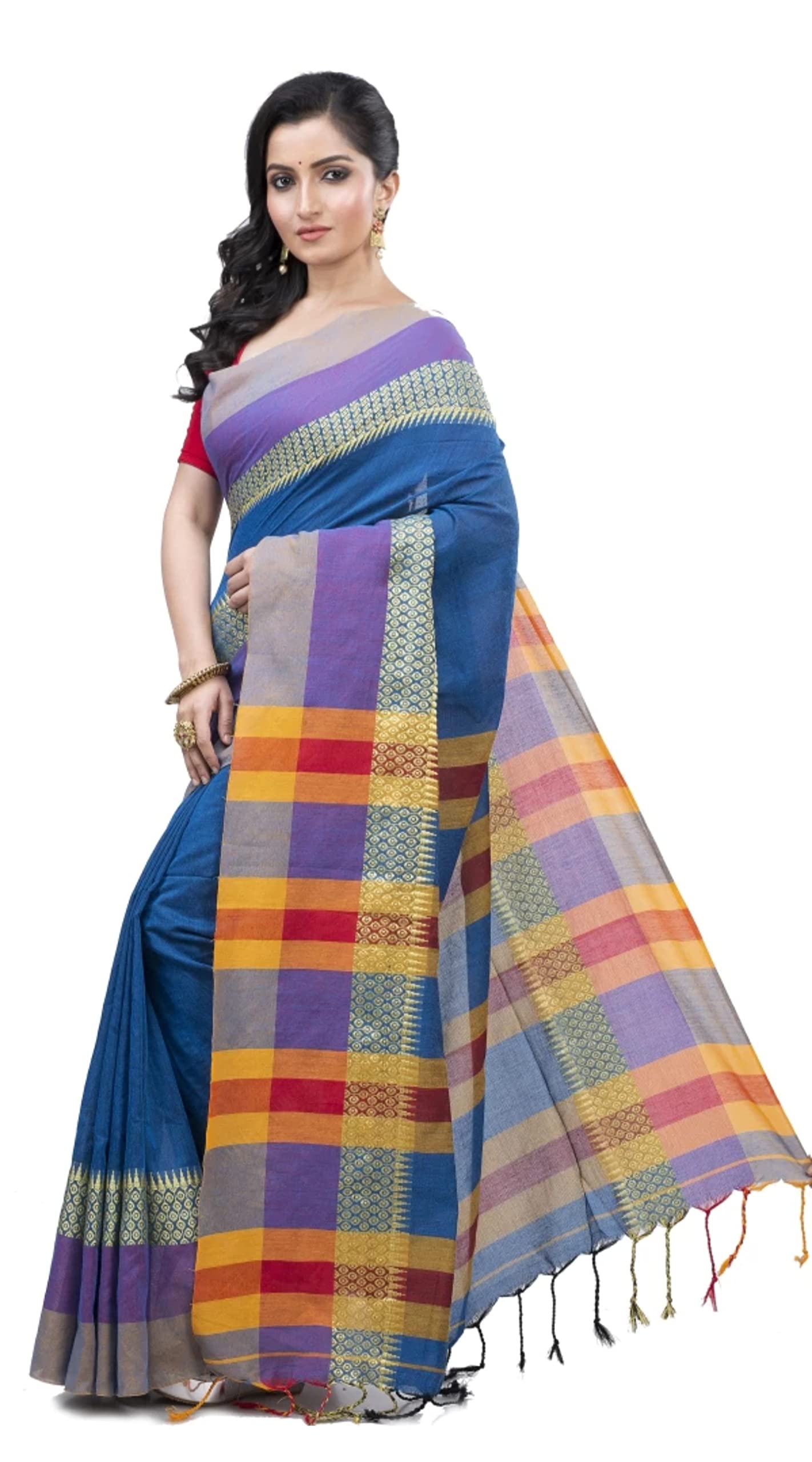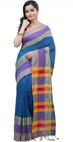 OISHANI SAREE GHOR Women's Traditional Bengal Handloom Cotton Saree (Teal)