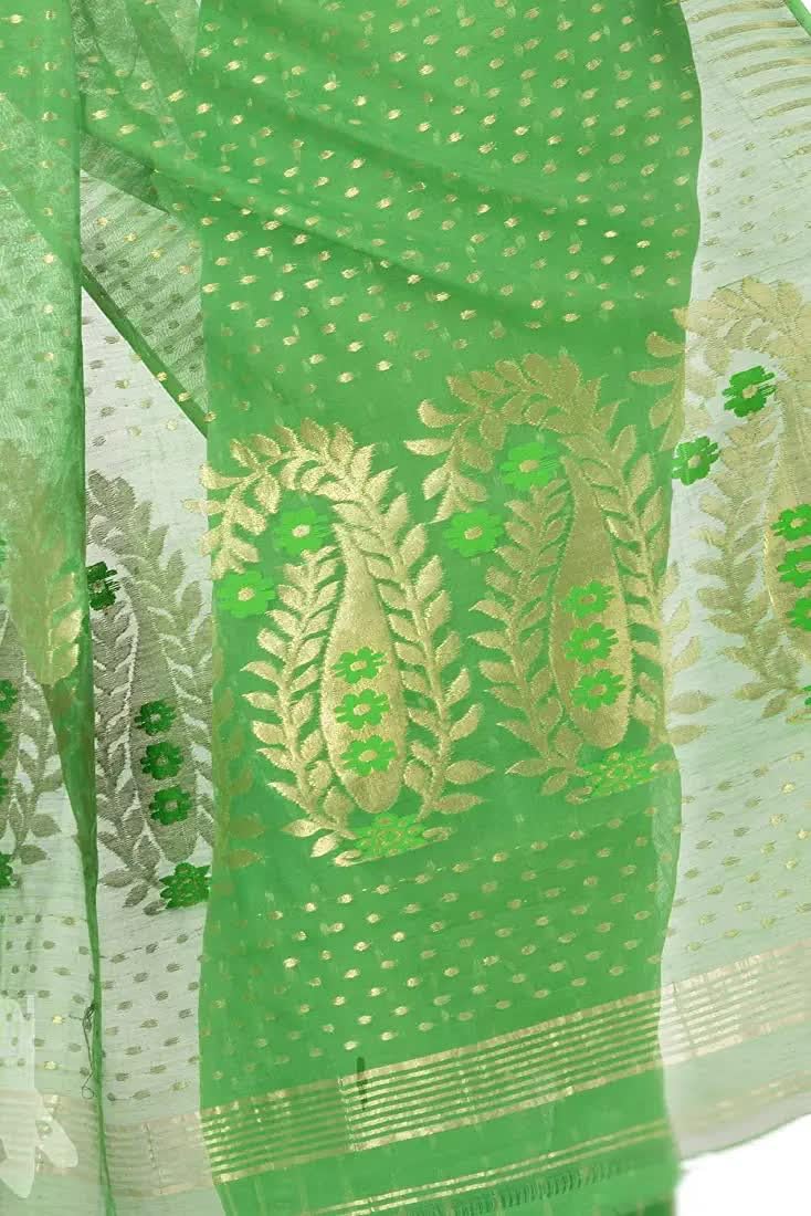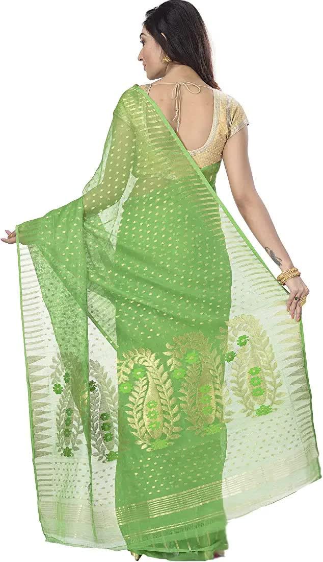 Piyari Fashion Womens Self Design Bollywood Cotton Silk Jamdani Saree Without Blouse Piece (Green)