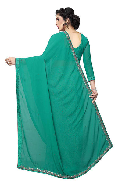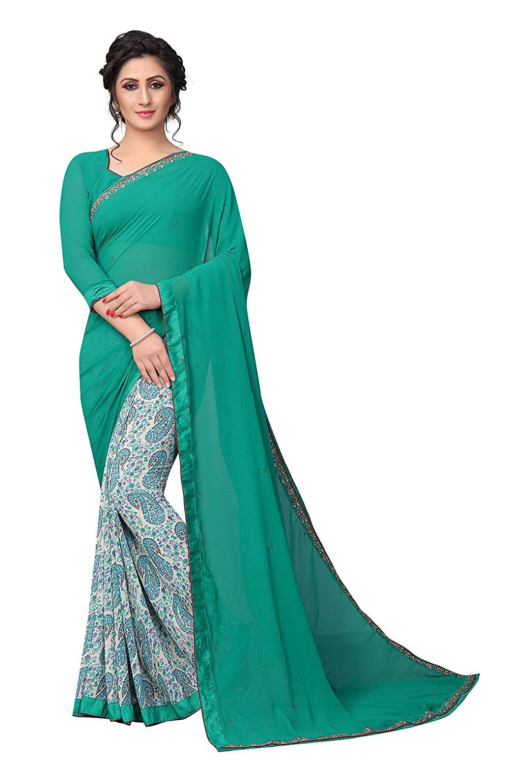 RAJESHWAR FASHION WITH RF Women's Half &Half Georgette Printed Saree With Lace & Blouse(A29 FIROZI RAMA_Free Size)
