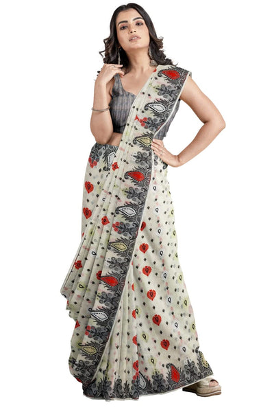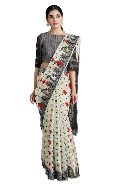 Saree Niketan Women's Traditional Bengal Cotton Silk Jamdani Saree (white)