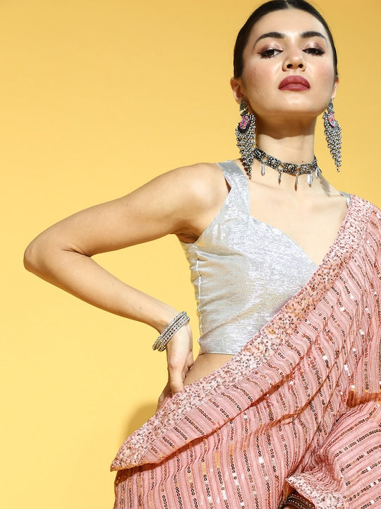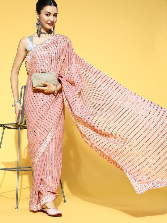 Sku: PNKGLD-FLRL-ZARI-CHIF-SAREE